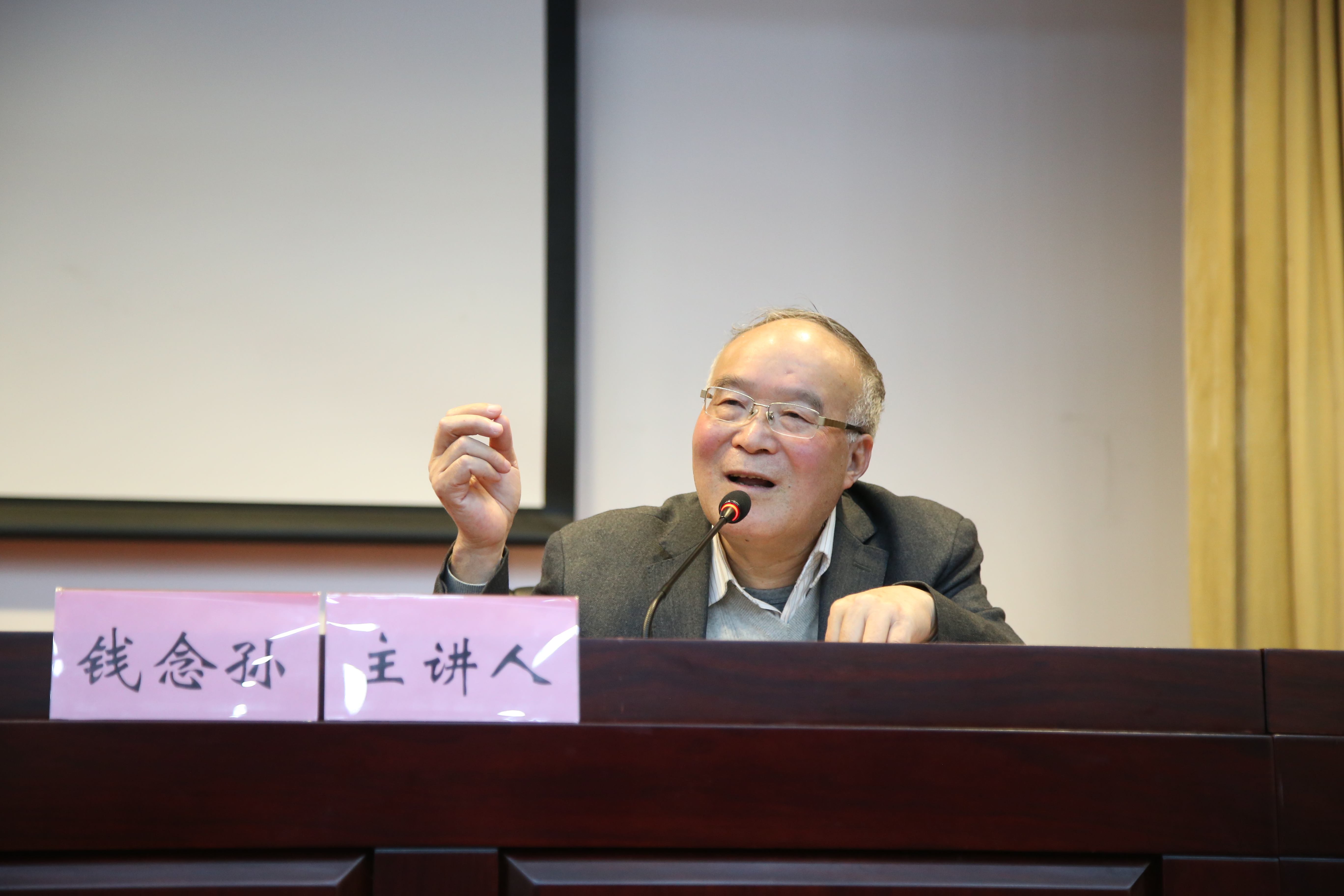 钱念孙从《论语》、《孟子》中溯本追源“君子”的概念,解读了君子文化的丰富内涵,从“君子文化的缘起和由来”、“君子文化在中华传统文化中地位和影响”、“君子文化与社会主义核心价值观的关系”、“激活和倡行君子文化的理论价值和现实意义”四个方面展开论述。他结合习近平总书记关于中华优秀传统文化的重要论述,阐述了“为什么要继承传统文化”和“怎样继承传统文化”;他认为,君子文化和弘扬社会主义核心价值观是能够直接嫁接并开花结果的老树新枝,激活和倡行君子文化有助于在全社会形成广泛价值共识。