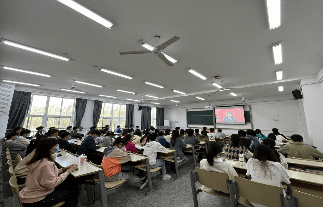 轻纺工程与艺术学院组织团员青年、学生骨干集中收看党的二十大开幕会现场