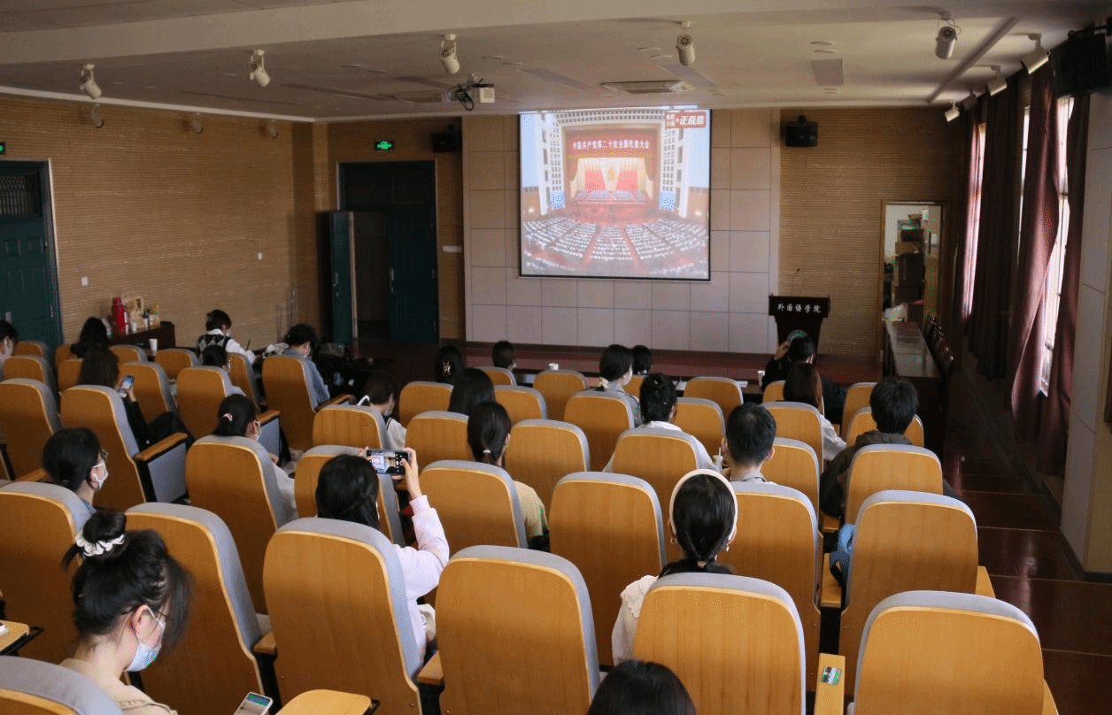 外国语学院组织团员青年、学生骨干集中收看党的二十大开幕会现场