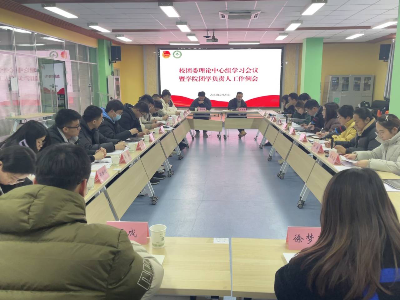 本网讯 2月24日下午,校团委理论学习中心组学习会暨学院团学负责人工作例会在大学创客空间A区路演大厅召开。会议由校团委书记林煦东主持,校团委全体成员及各学院团学负责人参加会议。
