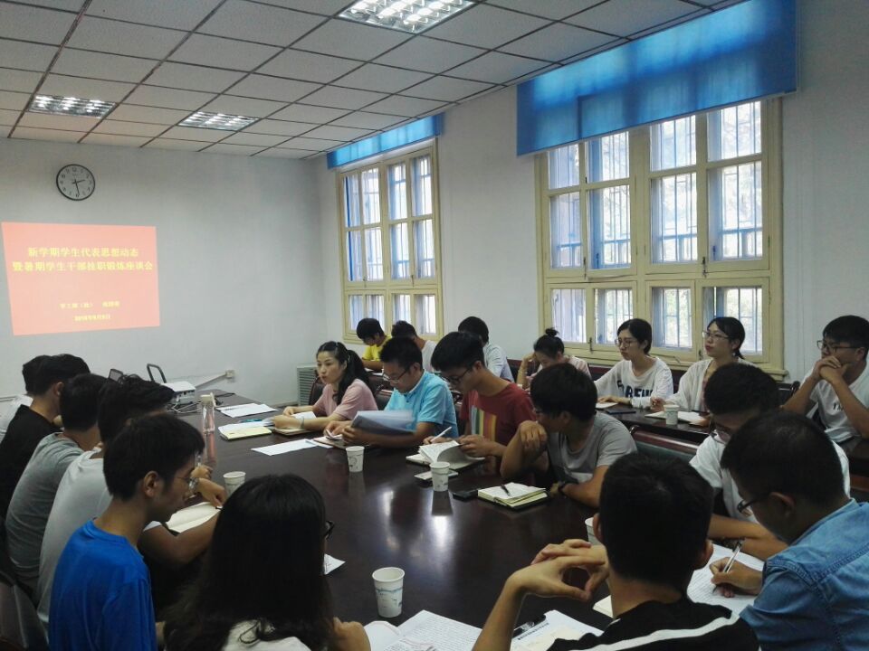 本网讯 9月5日下午,校学生处、团委在勤政楼134会议室召开新学期学生代表思想动态暨暑期学生干部挂职锻炼座谈会,来自16个的33名学生代表参加了座谈会。学生处、团委相关老师出席会议。会议由校团委副书记任琪主持。