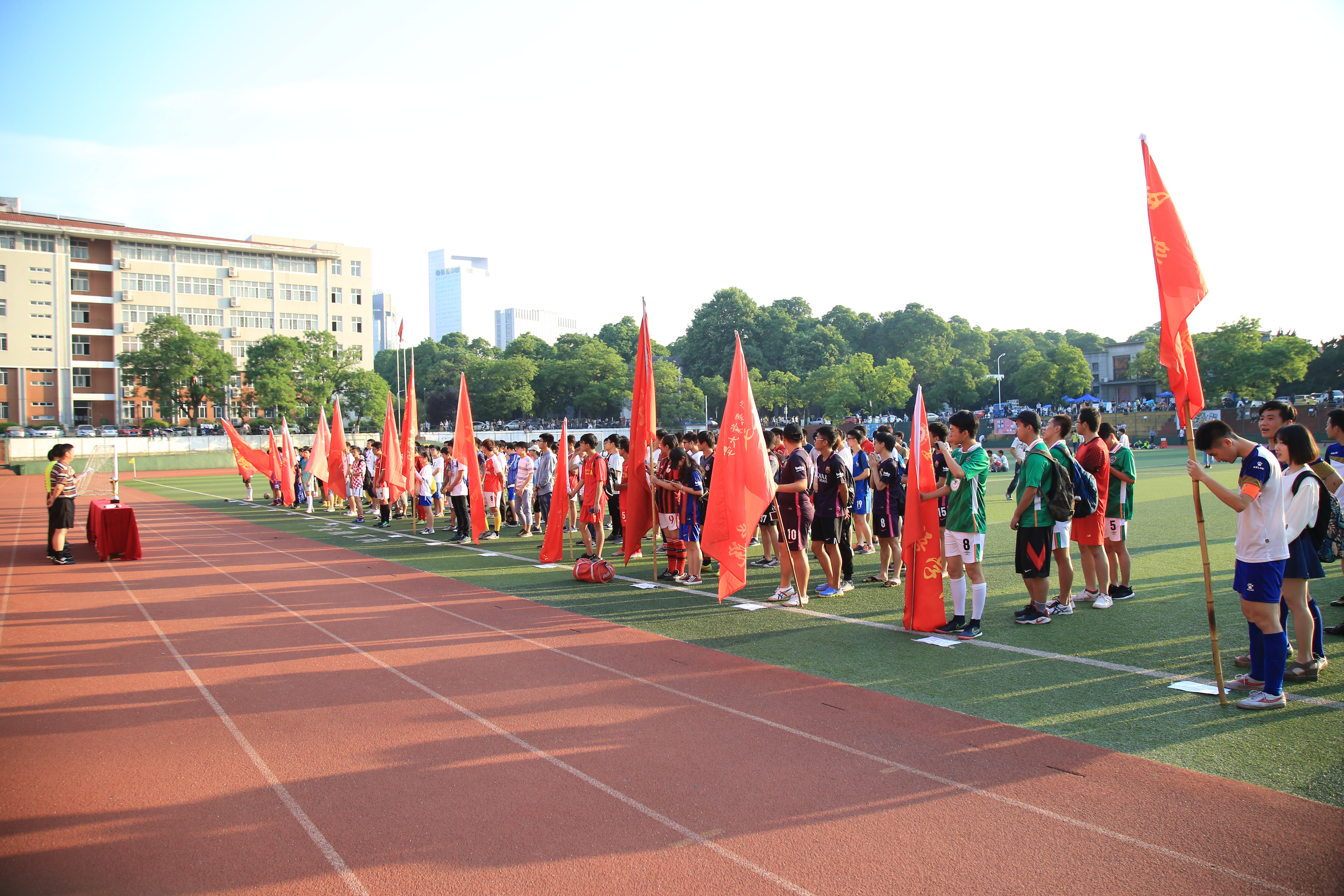本届“神农杯”足球赛自4月11日开赛以来,来自16个学院的球队经过近40天的激烈角逐,为我校师生献上32场精彩的比赛。赛场上,运动员奋勇拼搏,裁判员公正无私,现场工作人员坚守岗位,最终研究生院代表队获得本届“神农杯”足球赛的冠军,林学与园林学院代表队获得亚军,经济管理学院代表队和工学院代表队分别获得本次比赛的第三、四名。农学院代表队获得最佳组织奖。人文社科学院代表队、信息与计算机学院代表队、资源与环境学院代表队和轻纺工程与艺术学院代表队获得体育道德风尚奖,研究生院范雅魁同学和蔡伟民同学分获“最佳射手”和“最有价值球员”称号。