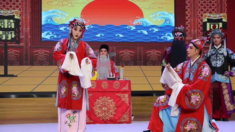 钟声悠长,鼓响灯亮,演出正式拉开了帷幕。京剧《诓妻嫁妹》是一出京剧的骨子老戏,故事情节构思巧妙,用一对玉钏串联起前后两部分戏,使俞素秋和韩玉姐两个人物的故事浑然一体。艺术家们唱念做打,用扎实稳健的唱功、美轮美奂的舞蹈、炉火纯青的武旦功夫、生旦净丑的角色魅力,将戏曲中的人物情绪展现得淋漓尽致。演出现场,丝竹管弦、皮黄声腔与现场观众的掌声和叫好声交织在一起。