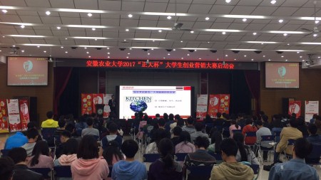 本网讯 为进一步培养大学生的创业意识,激发大学生的创业热情,增强大学生的创业素质,提高大学生的创业能力,3月29日,安徽农业大学首届“正大杯”大学生创业营销大赛在欣院四楼学生多功能厅正式启动。本届大赛由校团委主办,动物科技学院承办,正大集团安徽区人力资源中心协办。正大集团中东南十省区招聘总监林光阳、正大集团大区食品事业人力总监王大庆、正大集团安徽区现代食品事业总经理白振龙、校团委副书记任琪、动物科技学院党委副书记孙伟、理学院党委副书记韩弥明、园艺学院党委副书记吴永红等参加了启动仪式。