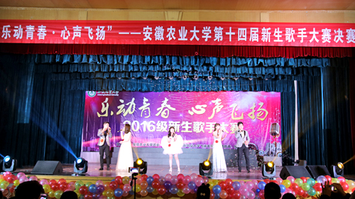本网讯 11月25日晚,由校团委主办,飞扬音乐社承办的“乐动青春,心声飞扬”第十四届新生歌手大赛决赛在校大礼堂如期开场。来自不同学院的10位选手各展才能,共同为千余名真挚热情的观众献上了一场激情饱满的音乐盛宴。中国音乐家协会会员、合肥工业大学刘苏宁教授,合肥师范学院音乐学院李雷老师 、人文社科学院艺术教研部主任卞小艺老师,飞扬音乐社指导老师、经济技术学院团委黄晓雨老师应邀出席并担任评委,还有20位来自各学院学生分会主要学生干部担当大众评委。