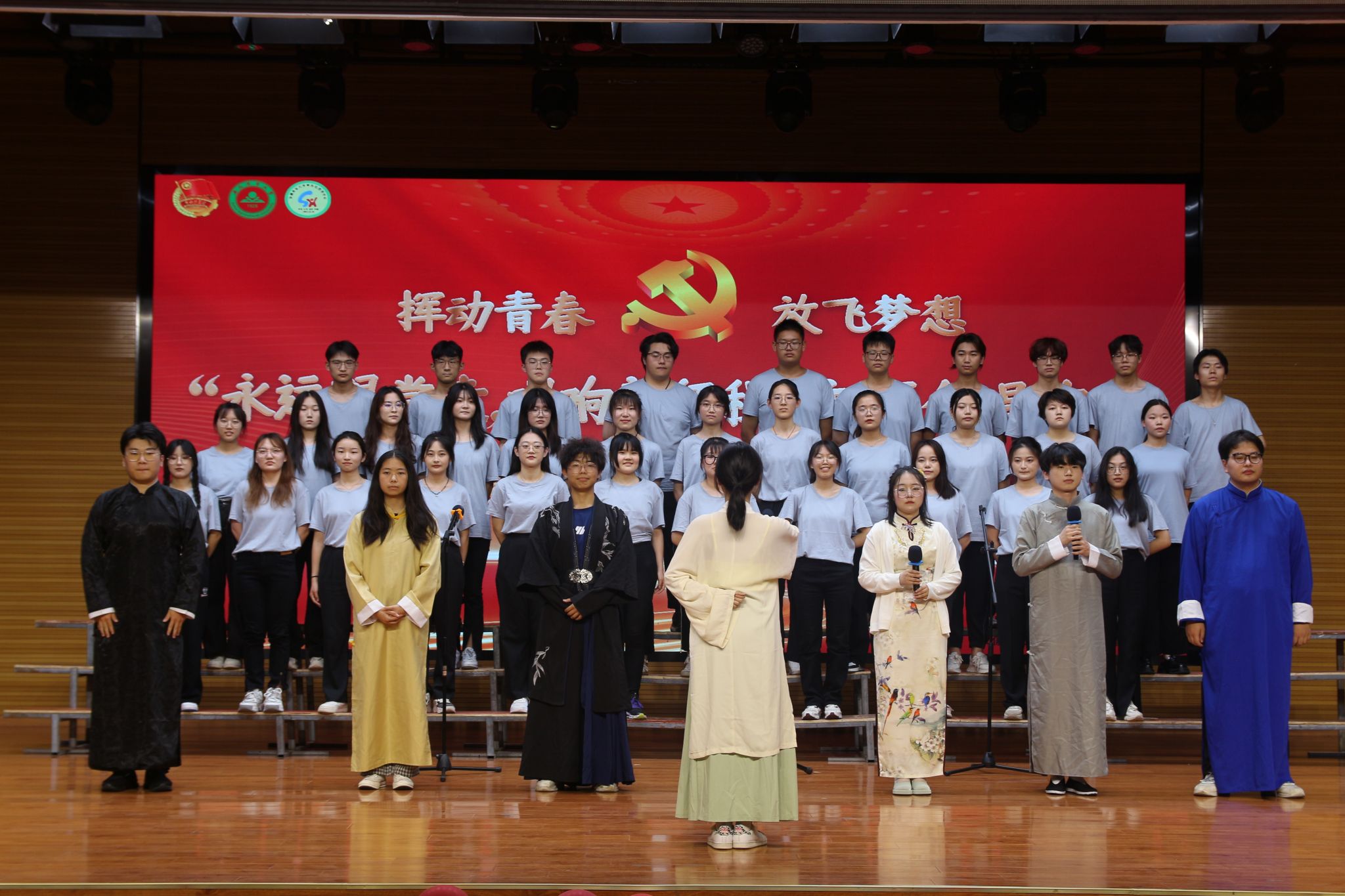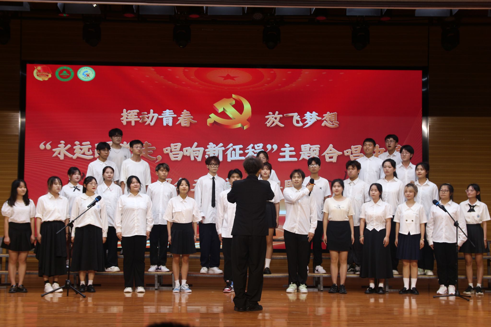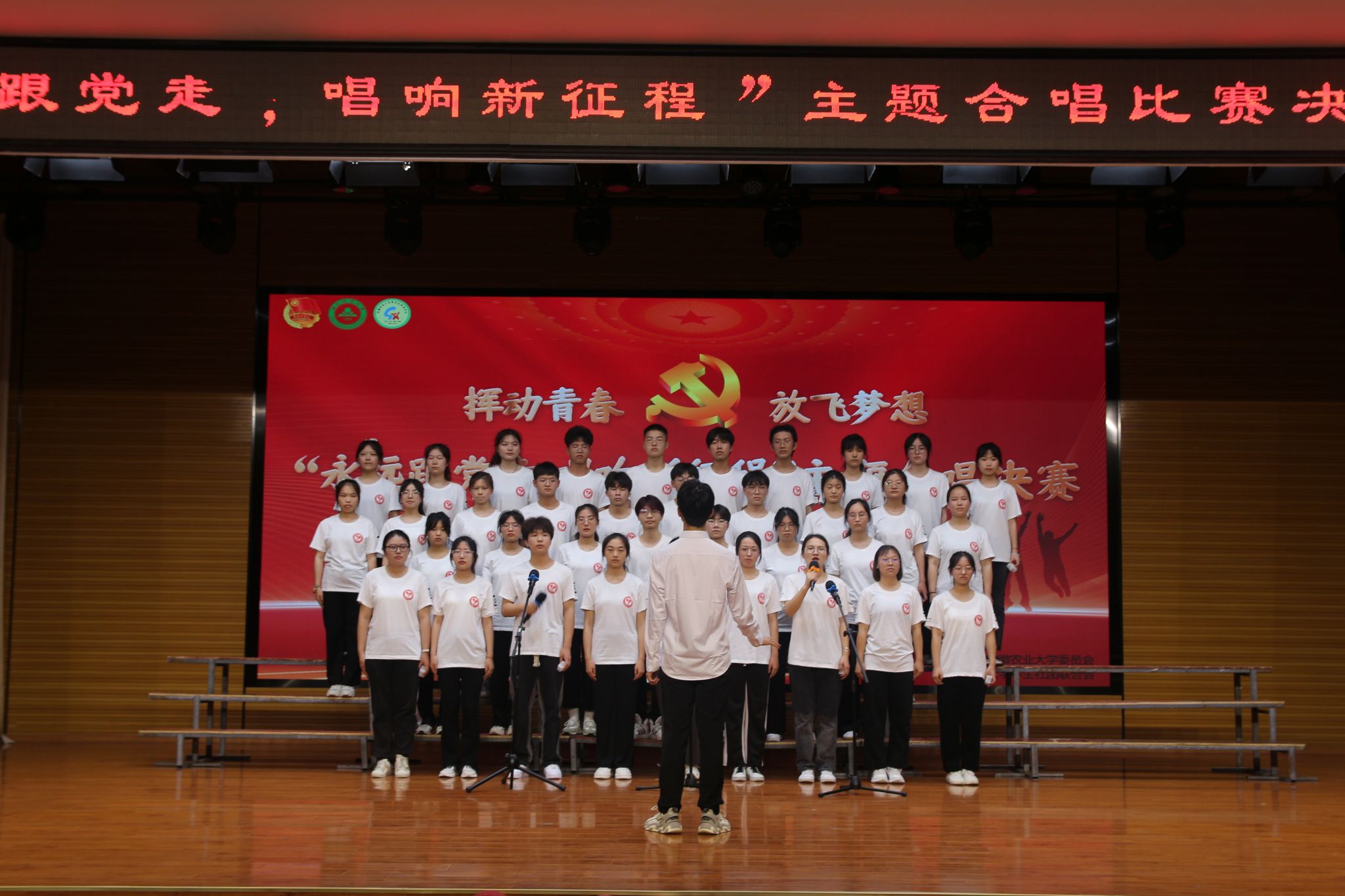 本网讯 5月28日晚,我校学生社团“永远跟党走 唱响新征程”主题合唱比赛在欣苑小礼堂举行。各参赛社团指导老师、学生代表200余人到场观看。校团委、人文社会科学学院相关老师担任比赛评委。
