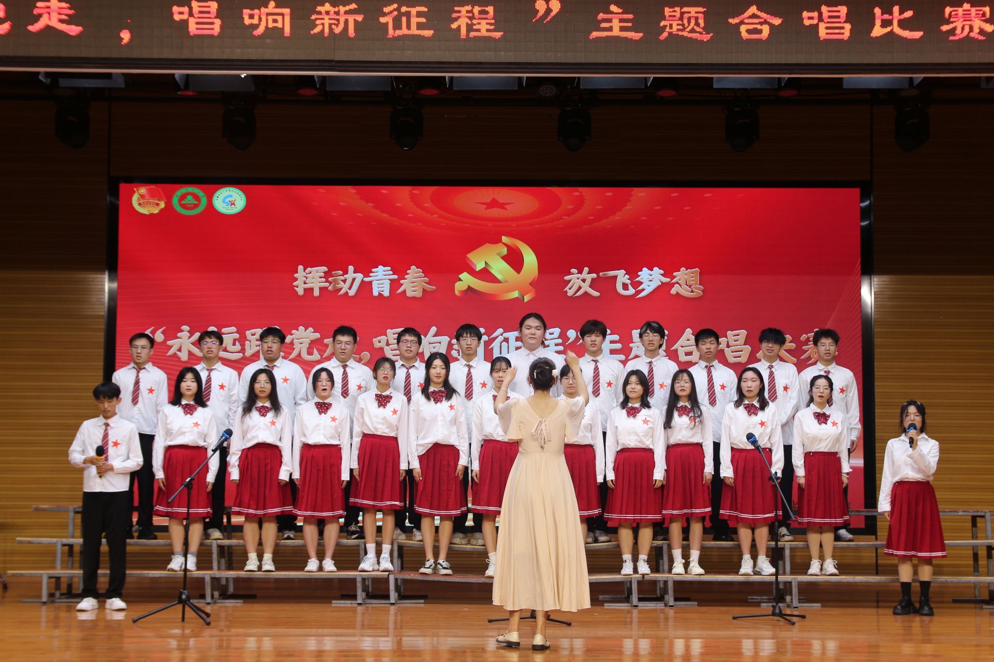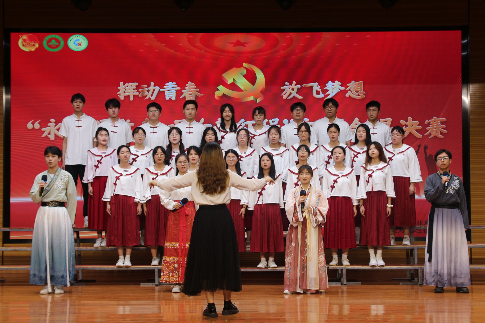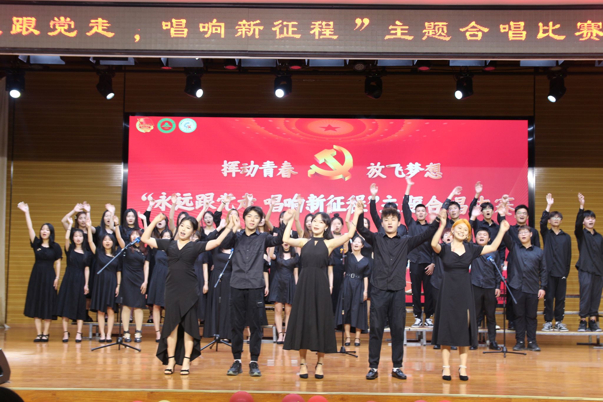 经过前期初赛选拔,共有8支队伍参加了决赛。决赛现场,各参赛队伍以昂扬的斗志、饱满的热情、挥洒激情,为现场观众演唱了一首首振奋人心的歌曲,用歌声表达对祖国的祝愿、对党的感激之情,展现新时代青年学生的豪情,唱出了青春的力量,更唱出了未来新一代青年的光景。