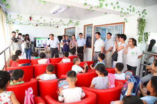 李恩年一行首先来到大圩镇沈福村留守儿童中心,我校暑期社会实践志愿者正在这里为留守儿童开设特色支教项目“绿色课堂”。李恩年仔细了解留守儿童学习生活状况,听取志愿者连续六年利用暑期在该中心支教情况的汇报,并向孩子们赠送了礼物。