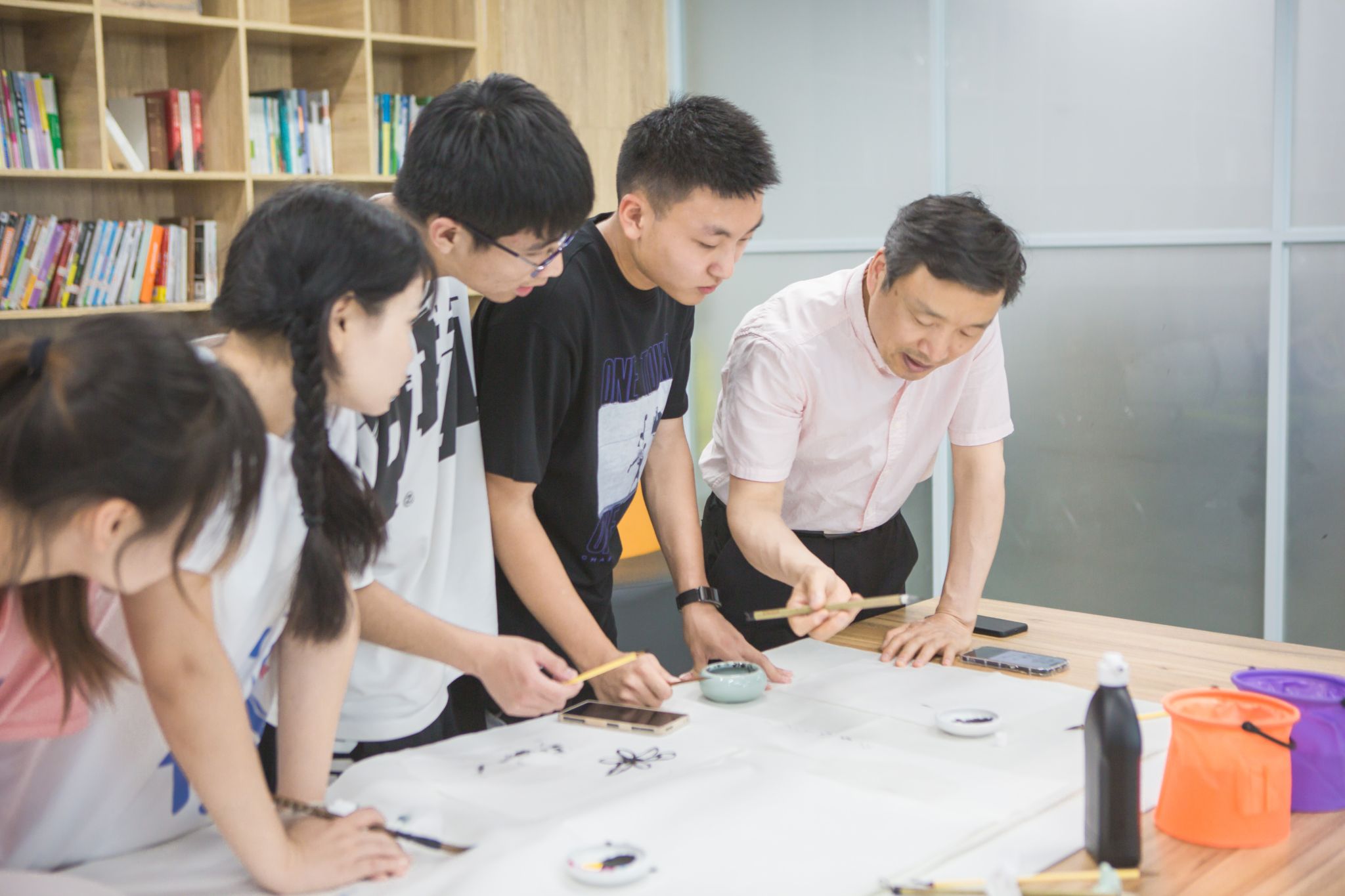 在文艺小分队活动现场,著名书法家、美术家、摄影家、舞蹈家深入到学生中间,进行现场授课。通过举行书法、绘画教学分享会,现场演示讲解,把传统书画知识、技巧传授给大学生爱好者;带领大学生探讨摄影艺术,分享构图技巧,激发创作灵感;在宽敞的多功能室指导学生舞蹈,动感的青春节奏吸引了大批学生围观学习。