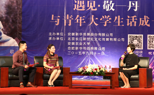 本网讯 9月11日晚,央视著名主持人敬一丹做客我校2015年第5期“神农大讲堂”访谈现场,与我校青年大学生共话成长,参与师生3000余人。校党委副书记李恩年出席。