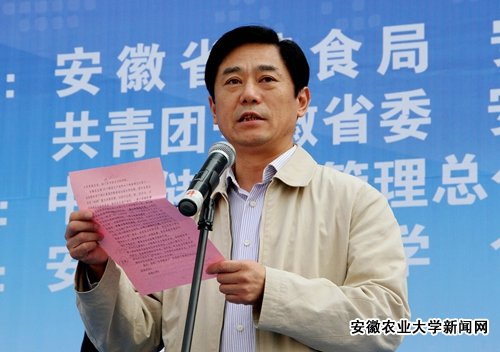 程备久在致辞中指出,“国以民为本,民以食为天”。粮食安全与社会的和谐、政治的稳定、经济的持续发展息息相关。一直以来,我校在改革创新中践行农业高校的使命,坚持服务“三农”的办学方向,以科教兴农、科教兴皖为己任,服务现代农业发展和新农村建设,致力于粮食增产增收,粮食加工、储运与安全的教学科研实践,涌现出一批以安徽省小麦高产攻关专家胡承林教授为代表的农业科研工作者,走出了一条享誉全国的“大别山道路”。希望同学们通过此次爱粮节粮宣传活动,共同行动起来,养成爱护粮食、节约粮食的良好习惯;作为一名安农学子,要学农、爱农、服务“三农”,勤奋学习专业知识,努力成为推动国家粮食安全发展战略的青春力量。