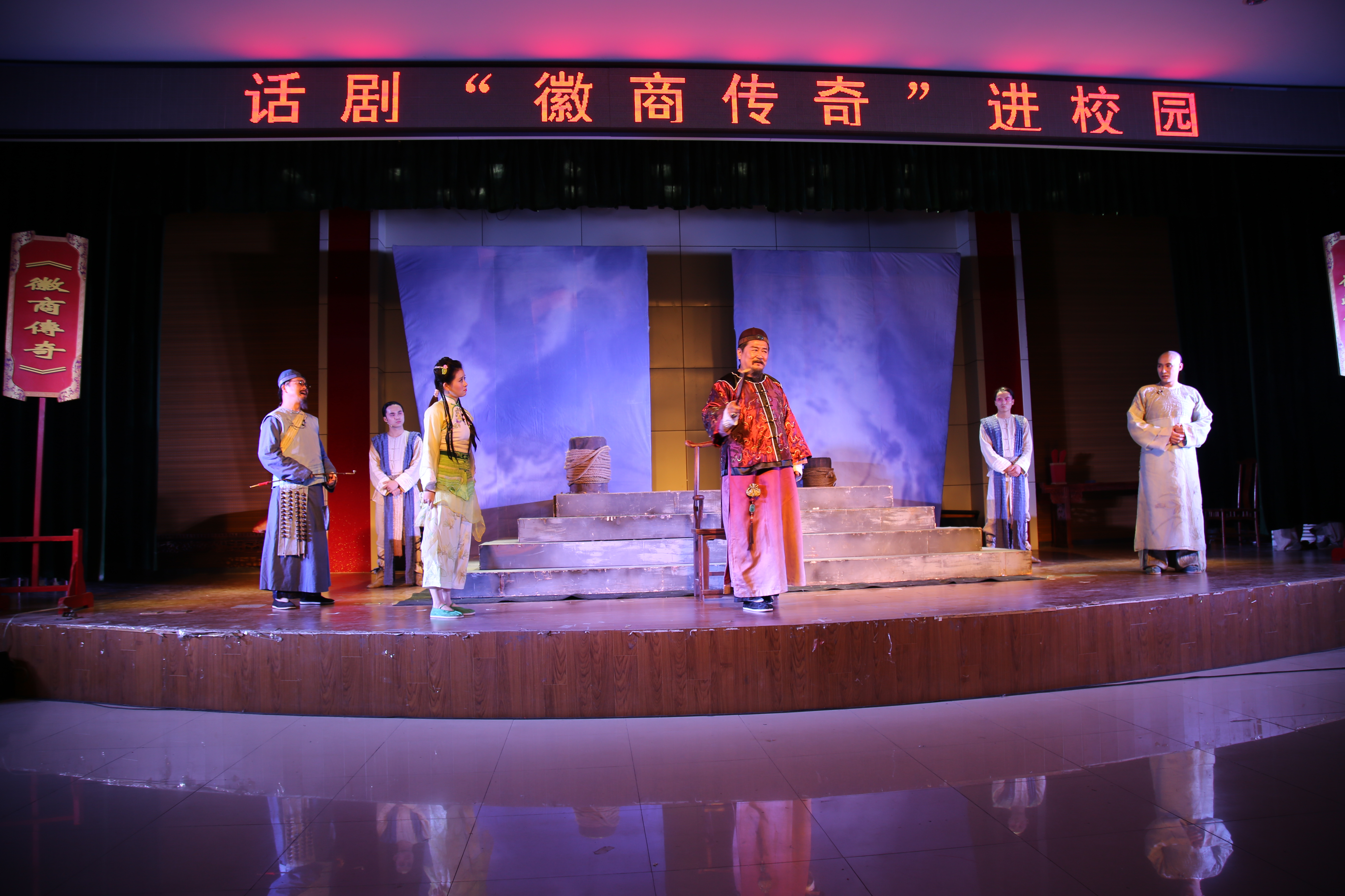 该话剧讲述了因家境所迫弃学从商的徽州青年程梦溪以人为本,以义取利的经商之道,不仅拯救了濒于破产的鲍禹城,而且还赢得了詹秀秀真挚的爱情。话剧通过生动的故事情结,演绎了程梦溪“仁、义、礼、智、信” 的从商宗旨,再现了他在市场中不断打拼、磨砺,于艰难中成长,于困顿中发展的历程,展现了徽州商人超群的智慧和胆识。演员精彩传神的表演、戏曲生旦角的插科打诨,载歌载舞的舞台表演,美轮美奂的布景,让观众在别样的意境中感受到了浓郁的地方文化和人物的人生命运,现场掌声不断,反响热烈。近两个小时的精彩演出受到了我校师生的一致好评,他们纷纷表示,通过观看话剧《徽商传奇》,更深层次的了解了徽商文化的精髓。