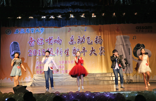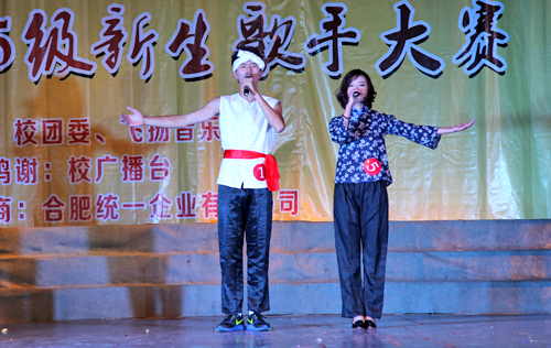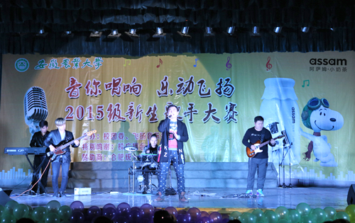 本网讯 11月27日晚,由校团委主办,飞扬音乐社承办的“音你唱响,乐动飞扬”第十三届新生歌手大赛决赛在校大礼堂如期开场。来自不同学院的10位选手各展才能,共同为千余名真挚热情的观众献上了一场激情饱满的音乐盛宴。团省委学校部副部长徐波,安徽大学艺术与传媒学院音乐舞蹈系副主任祝艳卉,合肥市歌舞团青年歌唱家胡乔,第二季中国好声音汪峰战队人气学员倪鹏,校艺术指导老师左震东,校人文社会科学学院艺术教研部主任卞小艺应邀出席并担任评委,还有20位来自各学院学生分会主要学生干部担当大众评委。