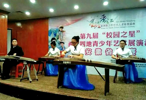 本网讯 由文化部中华社会文化发展基金会发起,教育部中国教育电视协会、中国关心下一代工作委员会公益文化中心等单位联合举办的两岸四地“校园之星”全国艺术风采展示活动在合肥成功举办。活动中,我校大学生民乐团童培筠同学演奏的古筝独奏《打虎上山》荣获民乐独奏第一名,宁愉加、童培筠、刘铭璇、贾丽颉、孙薇等五名同学演奏的古筝五重奏《战台风》获得民乐团体第一名。