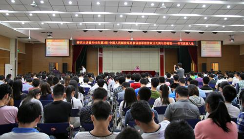 本网讯 4月29日下午,中国人民解放军总参谋部军旅作家汪孔周做客我校2015年第3期“神农大讲堂”,在学生活动中心多功能厅为现场近600名师生带来了一场题为“书写美丽人生”的讲座。