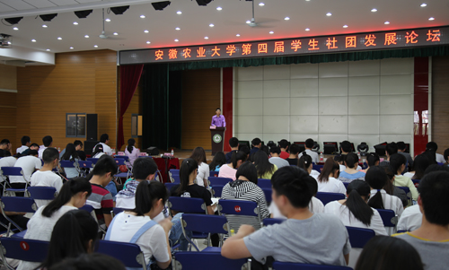 本网讯5月16日下午,我校第四届学生社团发展论坛在欣苑四楼多功能厅举行。校团委副书记张健,创行协会指导老师汤婕,原学生社团管理委员会第五届主任、亿圈文化传播有限公司董事长魏剑文出席本次论坛。在肥兄弟高校社联代表及我校社联、社团等近300名学生干部参加了论坛。