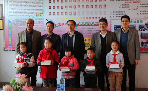 期间,李恩年一行考察了徽州区岩寺镇中心学校,出席我校援建的共青书屋揭牌仪式。我校向岩寺镇中心学校捐赠图书600余册,并向10名家境贫困的小学生捐赠了共5000元的爱心助学金。随后,李恩年和区领导在岩寺镇新四军军部旧址纪念馆为我校大学生思想政治教育实践基地揭牌。