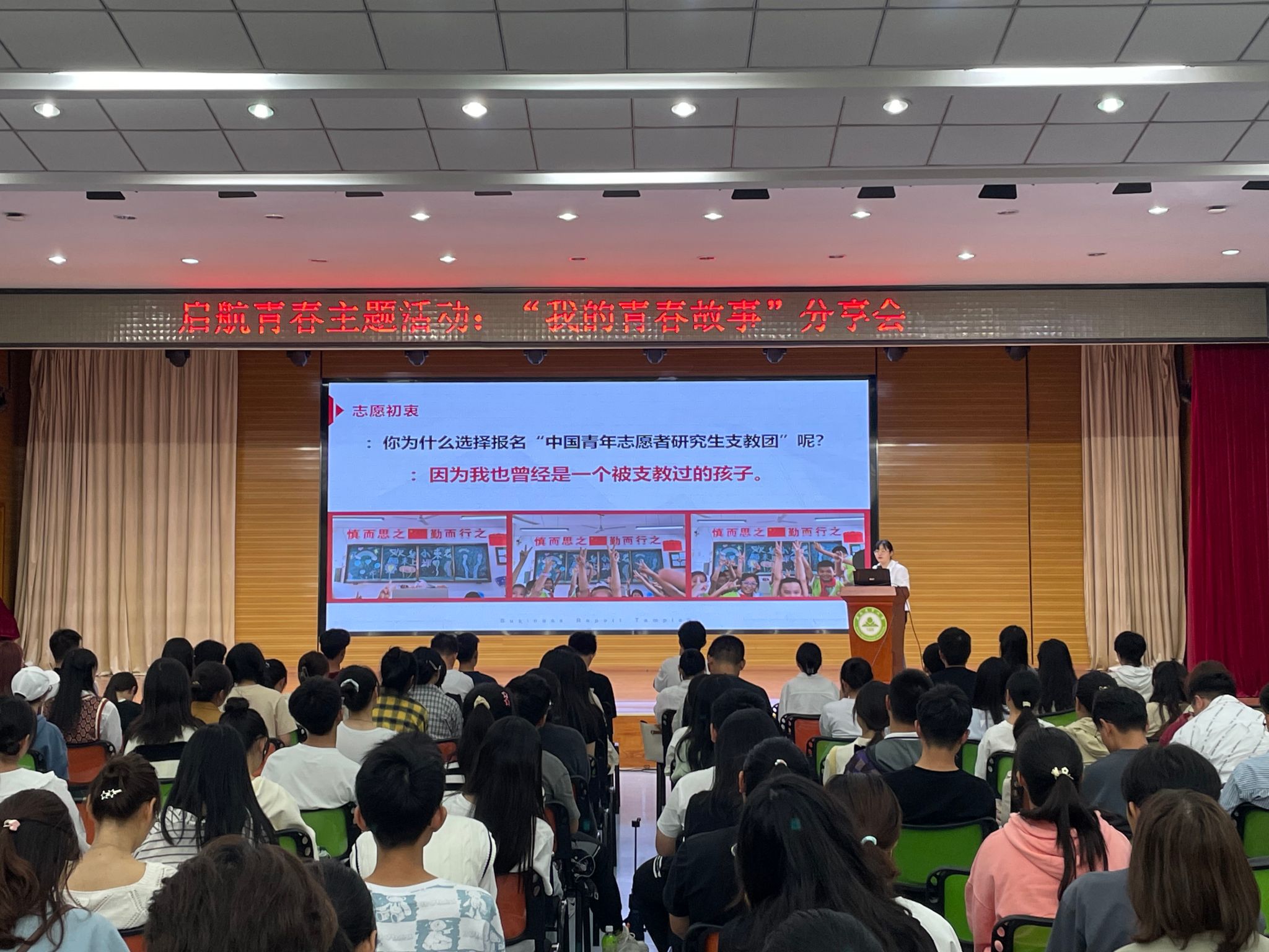 本网讯 为充分发挥先进典型大学生的示范引领作用,帮助新生科学合理规划大学生活,10月18日下午,我校邀请先进典型青年大学生在欣苑四楼小礼堂开展启航青春主题活动暨“我的青春故事”分享会,各学院230余名新生团干部代表参加。