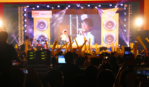 本网讯 由中央人民广播电台主办,校学生会协办的“MusicRadio音乐之声HIGH歌校园行”2014飞扬青春梦想毕业演唱会于 6月7日19:00在我校大礼堂激情上演。知名歌手朱克、黄鸿升、王大文和我校飞扬音乐社的校园歌手们一同为2014届毕业生送去一场音乐盛宴。近2000名师生观看了此次演唱会。