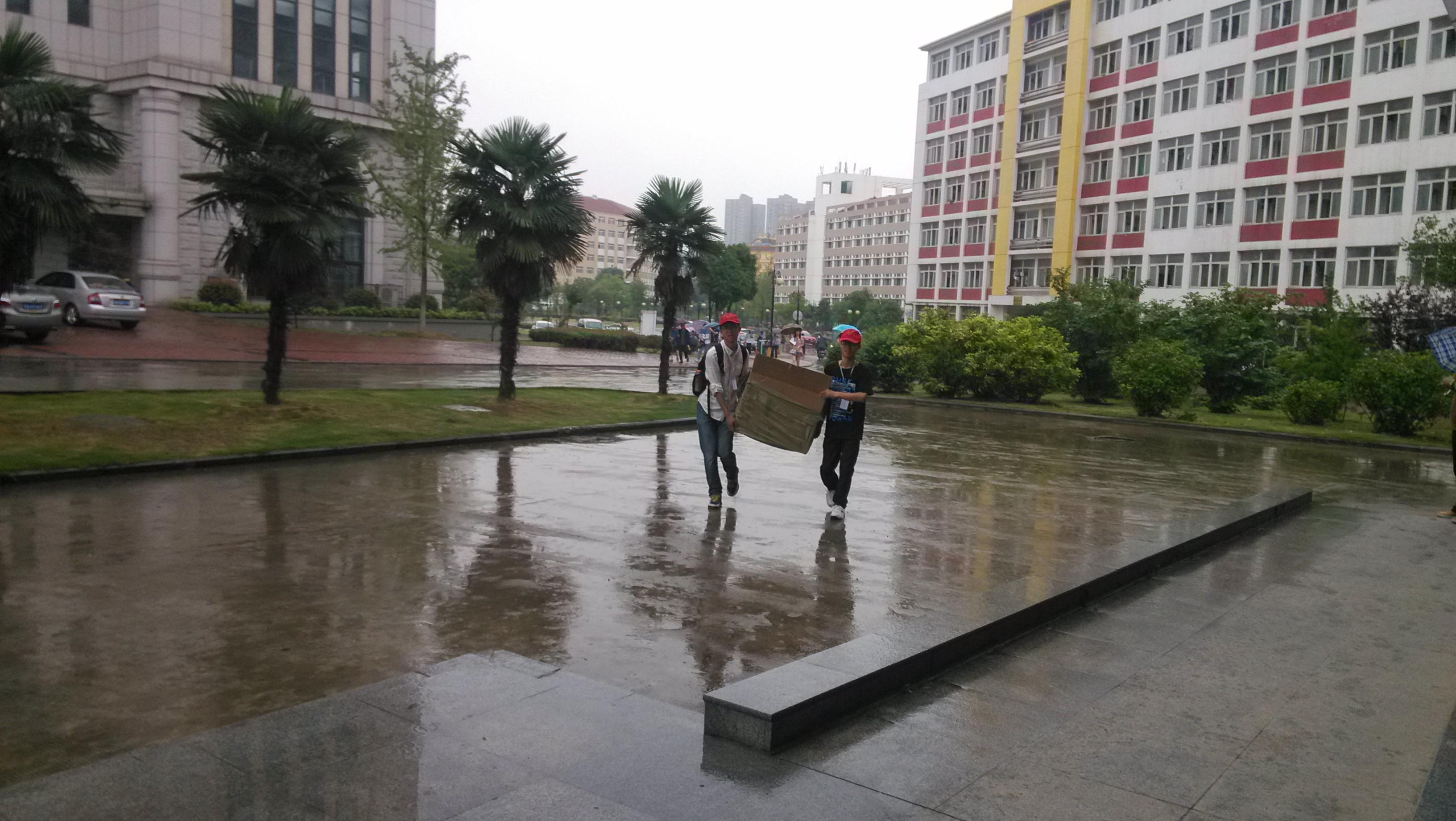 天公不作美,下起了小雨。志愿者们加快了前进的步伐,争取在大雨前,将物品搬运至指定场地。