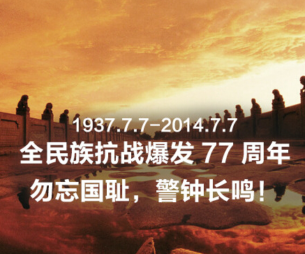 同胞们,同志们,朋友们:今天,我们在这里隆重举行纪念全民族抗战爆发77周年仪式,目的是铭记历史、缅怀先烈、珍视和平、警示未来,坚定不移走和平发展道路,坚定不移维护世界和平。