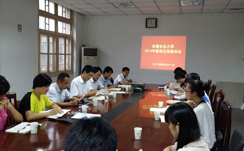 本网讯 9月11日下午,学生处、团委组织召开学生暑期见闻座谈会,来自各学院的27名学生代表畅谈暑期见闻和对当前时政热点、学校发展的认识,交流思想,明确责任。同学们纷纷表示要认真领会省委书记张宝顺来校调研时的讲话精神,争做勤于学习、勇于实践、敢于吃苦、乐于奉献的安农人。团委书记刘海涛及学生处、团委有关同志参加座谈会,座谈会由团委副书记张健主持。