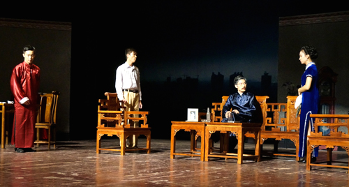 演出开始,灯光渐渐变暗,随之响起一阵清脆的雷鸣声,舞台定点灯突然亮起,话剧在一位老人忧郁悲凉的叙述中开始了。随着剧情的深入,现场观众渐渐地融入到了舞台演员的故事中,感受他们的悲喜,时而爆发出热烈的掌声。话剧历时近两个小时,在演员出色的表演下,观众的热情与悬念被留到了最后一刻。话剧结尾与开场遥相呼应,定格在电闪雷鸣之中。