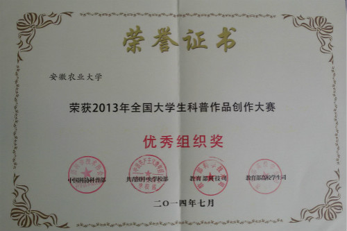 全国首届大学生科普作品创作大赛,三等奖1项,优秀奖2项,优秀组织奖;省第五届百所高校百万大学生科普创意创新大赛,一等奖1项,二等奖2项,三等奖13项,优秀奖15项,连续3年“优胜奖”。优秀组织奖、“优胜奖”分别仅有5所高校获得。“双百”大赛更是取得了5年来突破性的好成绩。