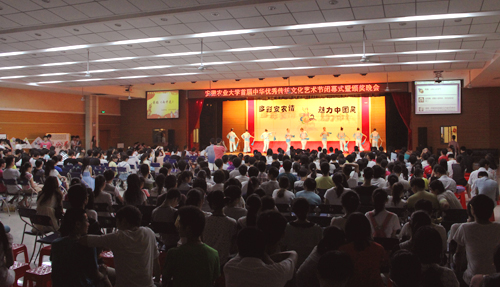 为了继承和弘扬中华优秀传统文化,发挥传统文化在培育和践行社会主义核心价值观中的作用,校团委于2014年5月主办了以“多彩安农情,魅力中国风”为主题的首届中华优秀传统文化艺术节,吸引了近5000名同学的关注与参与,活动收效明显。本次中华优秀传统文化艺术节得到了学校领导的高度重视,校领导赵良庆、王华丽和校直部门的各位领导老师亲自参加了“五四”青年节当天举行的开幕式;校院两级团学组织联动,艺术节先后开展了20余项子活动,农耕文化、茶文化、园林文化、徽文化等现场展示活动,紧密结合学校特色,彰显了中华五千年文明史蕴含的博大思想内涵;汉字听写大赛、主持人大赛、传统文化知识竞赛、风筝设计大赛、“东方神韵”插画作品展、象棋比赛和相声小品专场晚会等活动,承载着安农学子对传统文化的继承和弘扬。(通讯员:冯峰)