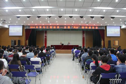 4月2日晚,全国政协常委、安徽省政协副主席、副校长夏涛教授为今年校级青马工程培训班做了题为“改革、梦想、担当”的2014全国“两会”精神专题报告,校院两级团委老师、校级青马班全体学员、部分学生干部代表聆听了报告,报告会由校团委书记刘海涛主持。