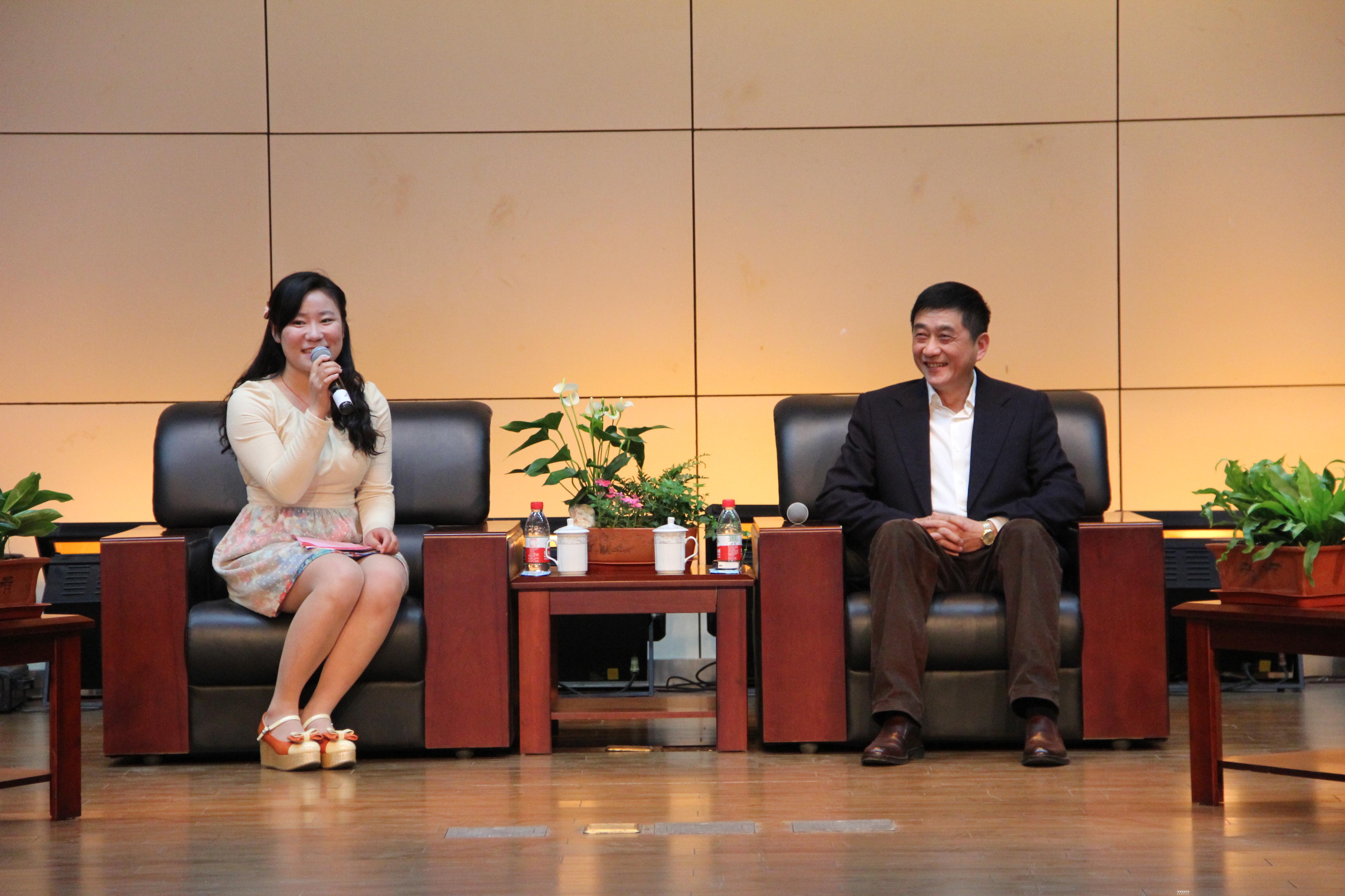 在随后的“代表提问”环节,六名学生代表分别围绕学校发展、学科建设、人才培养、基础设施建设、就业问题发问,在回答我校成为省部共建高校,学生能获得什么益处时,宛晓春表示,“农大是省属院校,学校与农业部和国家林业局共建是学校发展史上的重大事件,使得学校在一些方面可以直接与国家层面接轨,学校的基础条件、学科水平、科研实力、社会服务能力及整体办学水平提升,学生的培养水平也会得以提升,社会的认可度会更高。”“兴趣爱好,是最好的老师。”宛校长希望同学们能认真思考,谨慎选择,积极参与学校实施的转专业制、小学期制、主辅修制、卓越计划、青年农场主培养等改革,注重农工结合、文理融合,将学校农林专业的特色与优势转变为自身的综合竞争力,强化创新创业能力培养,努力成为社会所需要的、能够适应现代农业发展需求的高素质复合型人才。关于“研究生的瓶颈期,学术兴趣该如何培养?”宛晓春指出,人生需要思考高度,设立目标,年轻人应该有追求,研究生群体应该有长远的眼光与执着的信念,把握人生关键点,走好人生路。在谈及担任校长的7年多中最遗憾和最成功的事情时,宛晓春饱含深情地说,“最成功的是引进了激励机制,完善了管理制度,学校得到较快的发展。当然也有很多遗憾,学生和教师应在学校发展过程中发挥更大的主体作用,这其中还有不到位的地方,希望今后会能得到更好的体现。”