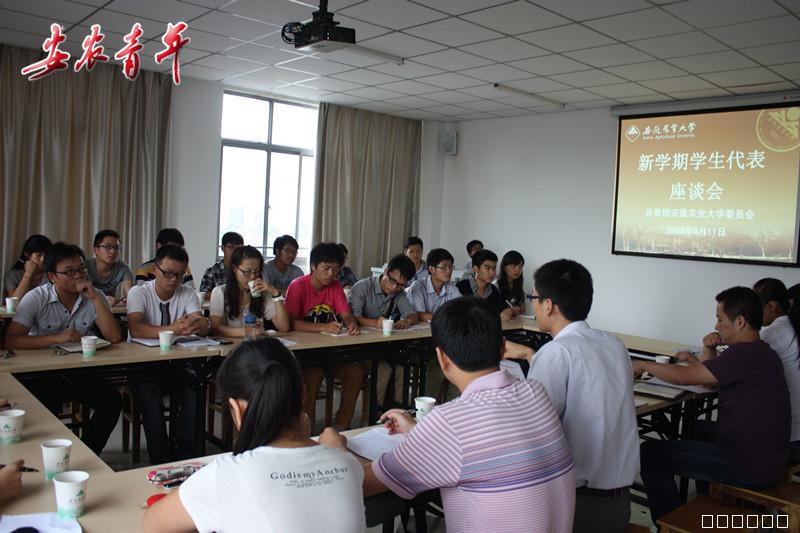 本网讯 9月11日下午,团委组织召开新学期学生代表座谈会,团委副书记张健及团委四位老师出席座谈会。校学生会、研究生会、社管会、大学生新闻中心、勤工助学管理中心、素拓部、志工部、各学院学生分会、安农青年传媒中心、大学生管乐团等23位学生代表参加座谈会。