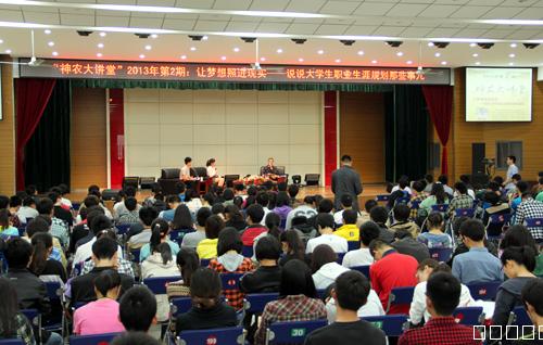 本网讯 5月16日下午,我校83届农学专业校友、安徽新华发行控股有限公司(集团)常务副总经理、安徽新华传媒股份有限公司副董事长刘建伟做客我校2013年第2期“神农大讲堂”,与我校近400名师生回顾往事,畅谈青春点滴,分享人生经历。