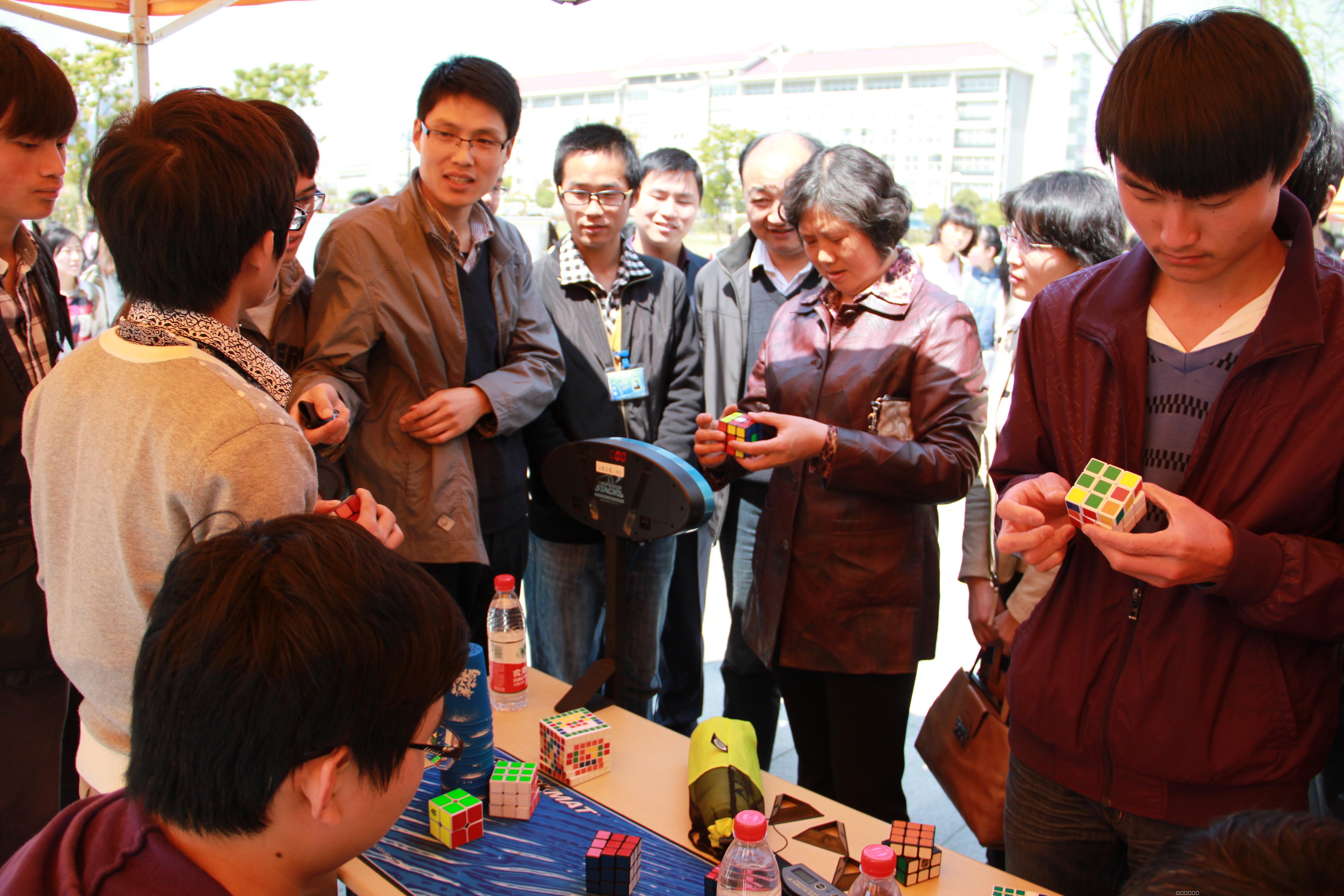 开幕式现场设有活动宣传区、科技展品区、活动报名区、现场体验区。工学院广志车队、魔方表演队、中国科技大学机器人表演队、合肥市科技馆部分科技展品前人头攒动,很多同学饶有兴致的驻足观看,近2000名同学通过现场报名参加各项活动。