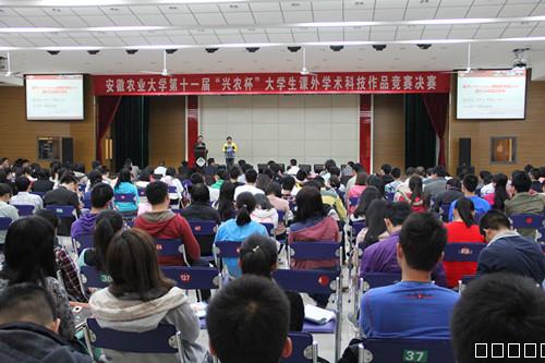 本网讯 4月13日,我校第十一届“兴农杯”大学生课外学术科技作品竞赛决赛在大学生活动中心举行。合肥国家大学生科技园发展有限责任公司总经理、国际CEFE高级培训师、安徽省创业辅导师张大鸣,我校生命科学学院院长刘朝良、工学院院长曹成茂、新农村研究院办公室副主任李桂亭、信息与计算机学院副院长张武、教务处副处长鄢高翔、校团委副书记张健、人文社会科学学院沈琳、理学院王文保应邀担任评委。入围决赛的17件作品选手、各学院学生代表以及相关学院团委负责老师参加了答辩会。