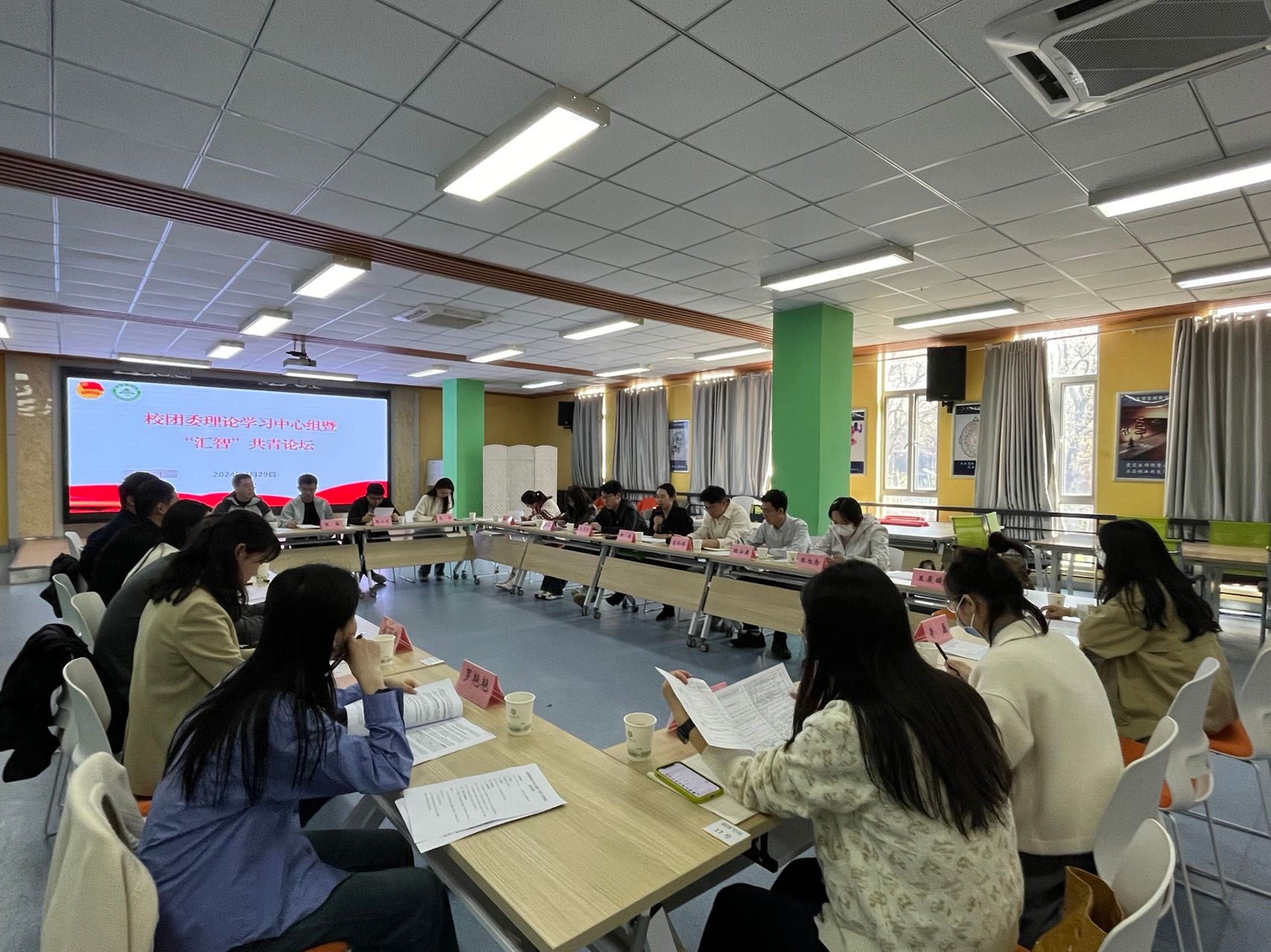 本网讯 3月29日下午,校团委理论中心组学习会暨“汇智”共青论坛在大学生创客空间路演大厅召开。会议由校团委副书记柳洁主持,校团委全体成员以及各学院团学工作负责人参加了会议。