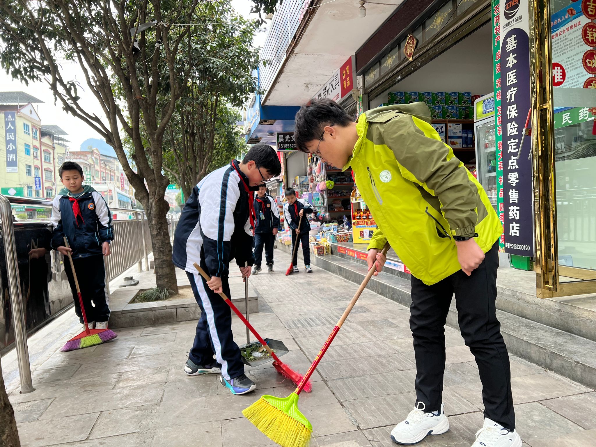 为了更好地将雷锋精神融入孩子们的心中,将雷锋精神“融入日常、化作经常”,研支团志愿者组织学生开展了“美化校园环境 创建文明城市”志愿服务活动,同学们拾起抹布、提着扫帚,捡拾校园及周边街道的包装袋、废纸片、烟头、果壳等垃圾,清理绿化带、花坛里的枯枝,擦拭校门和栏杆,校园内外环境变得更加整洁靓丽。