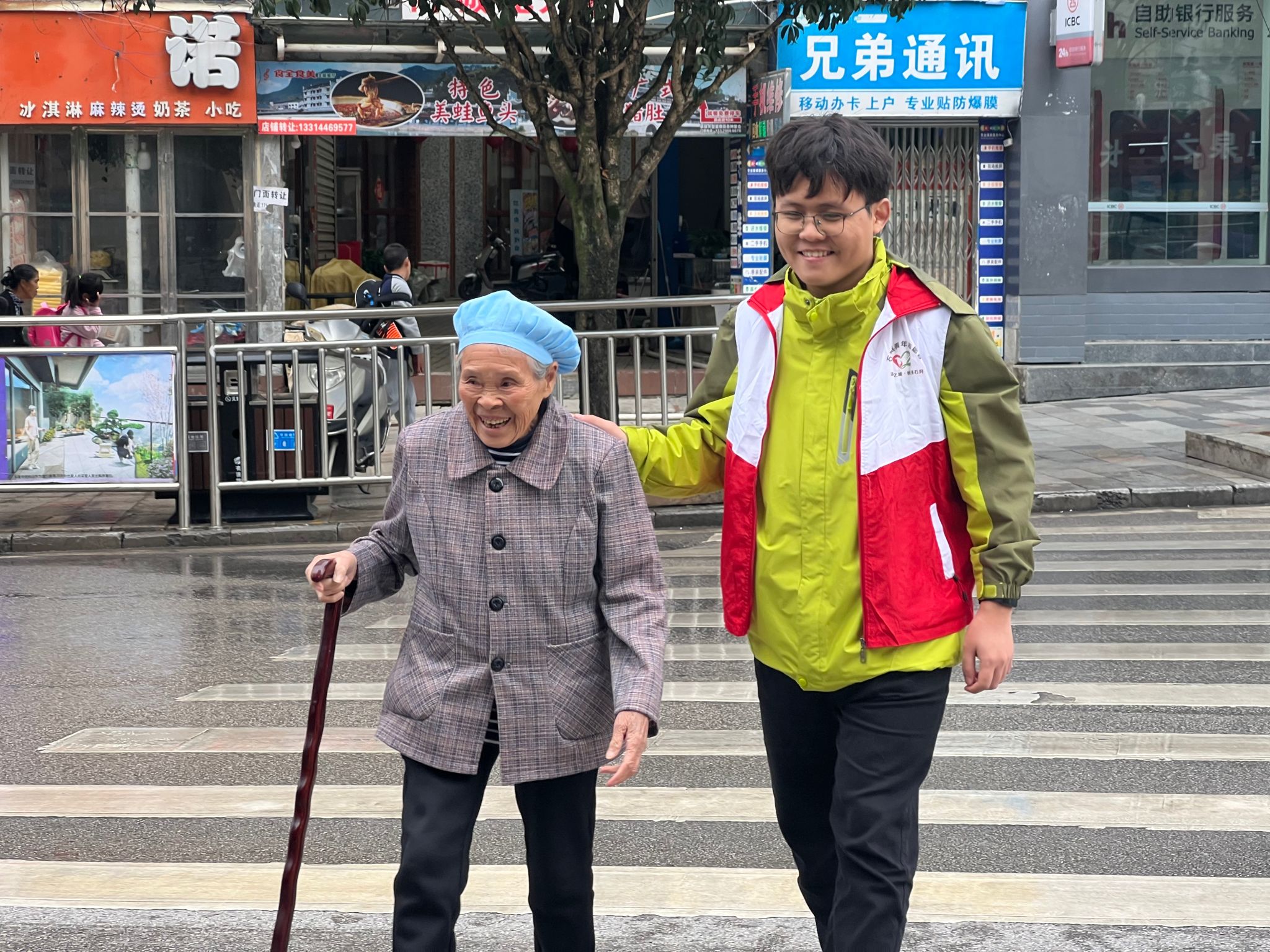 在服务地团组织的安排下,研支团成员参与当地各项学雷锋志愿服务和公益活动,并在2024年石阡县学雷锋志愿服务活动月暨“学雷锋·文明实践我行动”主题活动启动仪式上领誓。志愿者走上街头维护交通秩序,帮助老人、儿童等特殊需要群体过马路;前往植树点参与义务植树,助力春晖产业建设,展现了良好的志愿者形象与风貌。