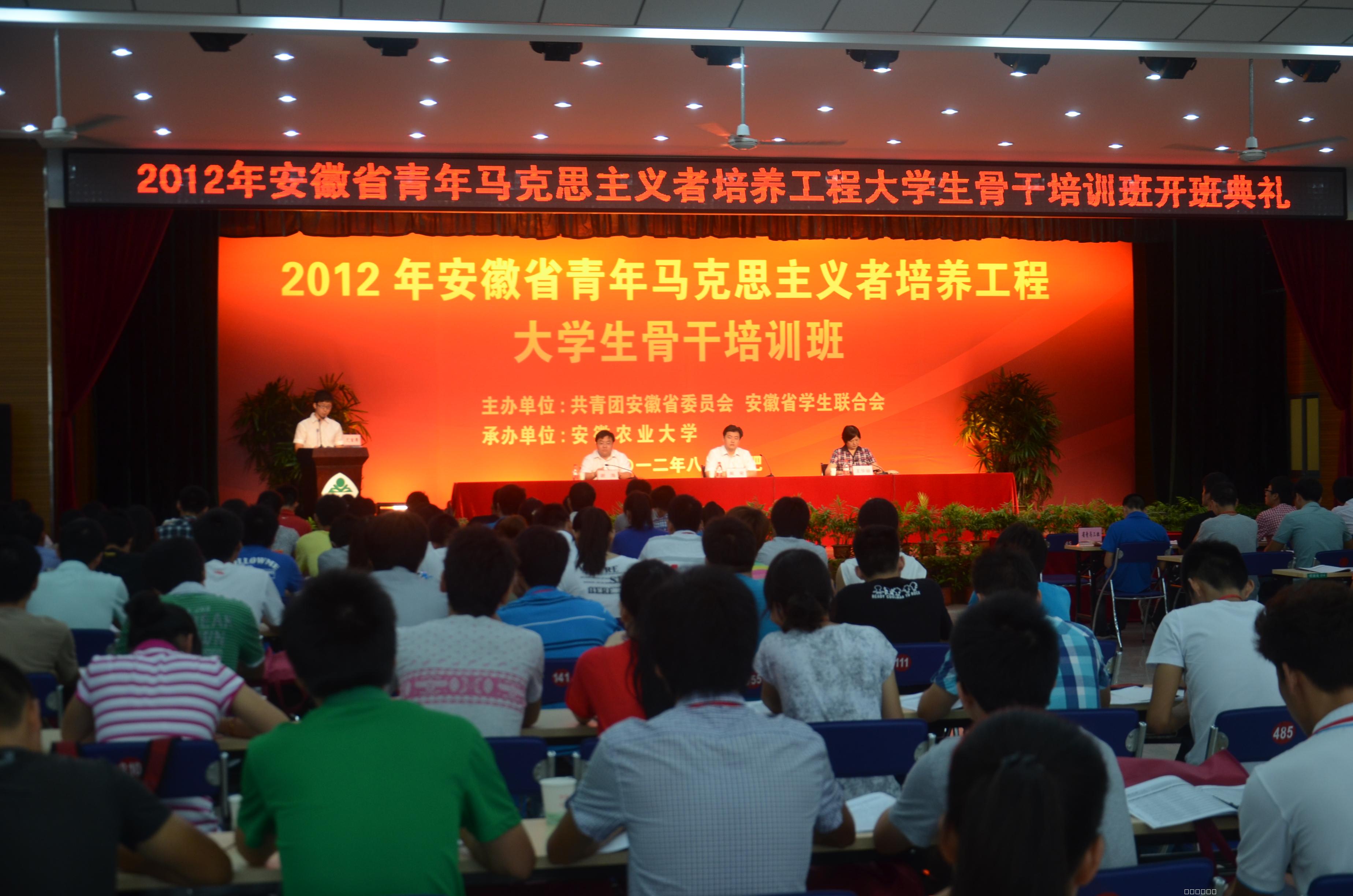 本网讯 8月12-16日,为期五天的2012年安徽省青年马克思主义者培养工程大学生骨干培训班在我校学生活动中心四楼多功能厅顺利举行。培训班学员由来自全省75所高校的199名大学生组成。