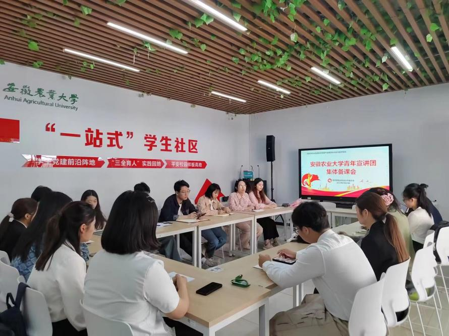 本网讯 4月24日中午,校青年宣讲团在“一站式”学生社区活动中心举行集体备课会。校团委相关指导老师、校青年宣讲团全体成员参加活动。