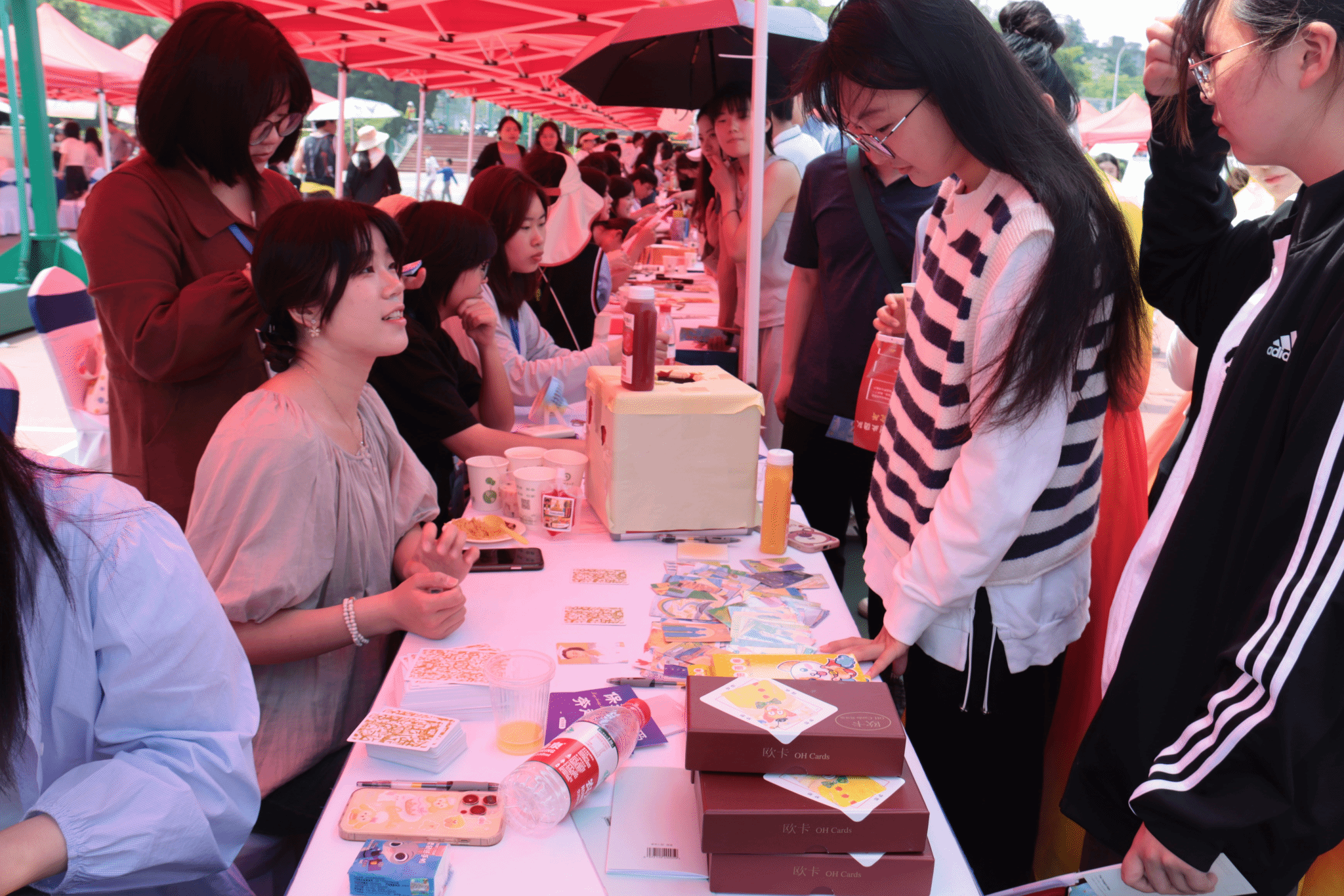 开幕式后,与会领导、嘉宾一同前往各展区观看展览,15个学院精心准备了39个农品展台及互动体验项目,以及徽派“插花”非遗项目、长丰非遗联盟、庐江文旅等受邀单位将徽派插花、扎染技艺品、吴山铁字、油纸伞竹编等非遗文化搬上展台,将传统农耕项目与特色项目相结合的农耕文化生动地呈现给了每一位观众。11个具有东南亚、南亚、非洲、欧洲、大洋洲风情的国际文化展台,集中展示了留学生国家的传统民俗展品和地域特色美食,展现了世界不同民族的文化特色。活动还邀请了合肥周边中小学生进校“研学”,“研学”队伍参观了茶树生物学与资源利用国家重点实验室,体验了大益爱心茶室“茶艺”表演、“耕读童行”课堂和“农耕文化节”现场活动,不仅拓展孩子们的课外知识,还增强了他们对大学生活和农耕文化的认识和理解。活动现场还出了“天时、地利、人和、丰收”集章活动,集齐印章即可获得“安小犇”玩偶、定制雨伞等礼品,众多师生驻足流连,热情参与互动。