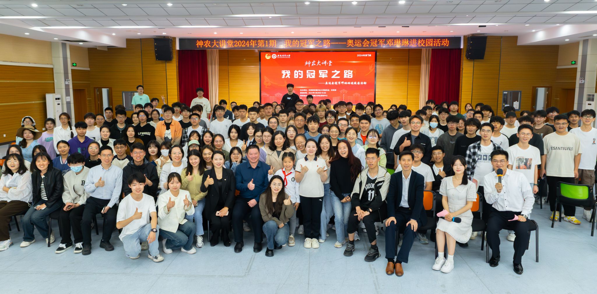 本网讯 为深入学习贯彻党的二十大精神,传承和弘扬五四精神,在第75个五四青年节来临之际,4月29日下午,北京、伦敦奥运会冠军、全国青联委员、省政协委员、省青联副主席、安徽师范大学青年教师邓琳琳应邀做客我校“神农大讲堂”,在欣苑四楼大学生活动中心以《我的冠军之路》为主题为我校师生带来一场精彩的青春思政课。校团委、体育部相关老师及300余名师生参加了本次活动。