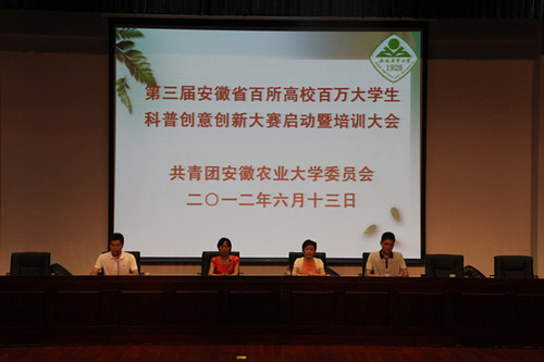 为了提高参赛作品的质量,6月13日晚,校团委在新图书馆报告厅召开第三届安徽省百所高校百万大学生科普创意创新大赛培训大会。会议特邀安徽省科普产品工程研究中心副主任周俊青和大赛办副主任马旭辉到会指导。团委副书记张健到会做动员讲话。各学院分团委负责人以及近500名同学参加了培训会。周俊青介绍了我省举办大学生科普创意创新大赛的背景、指导思想以及历届大赛所取得的成果,重点讲解了科普展教品,科普文学作品,科普艺术品,科普动漫、多媒体作品,网络科普、软件作品以及科普报告等六类作品的创作特点、创作原则和创作方法等。培训结束后同学们就报名参赛、作品创作等方面的问题和与会嘉宾进行了互动交流。(团委:张志平)