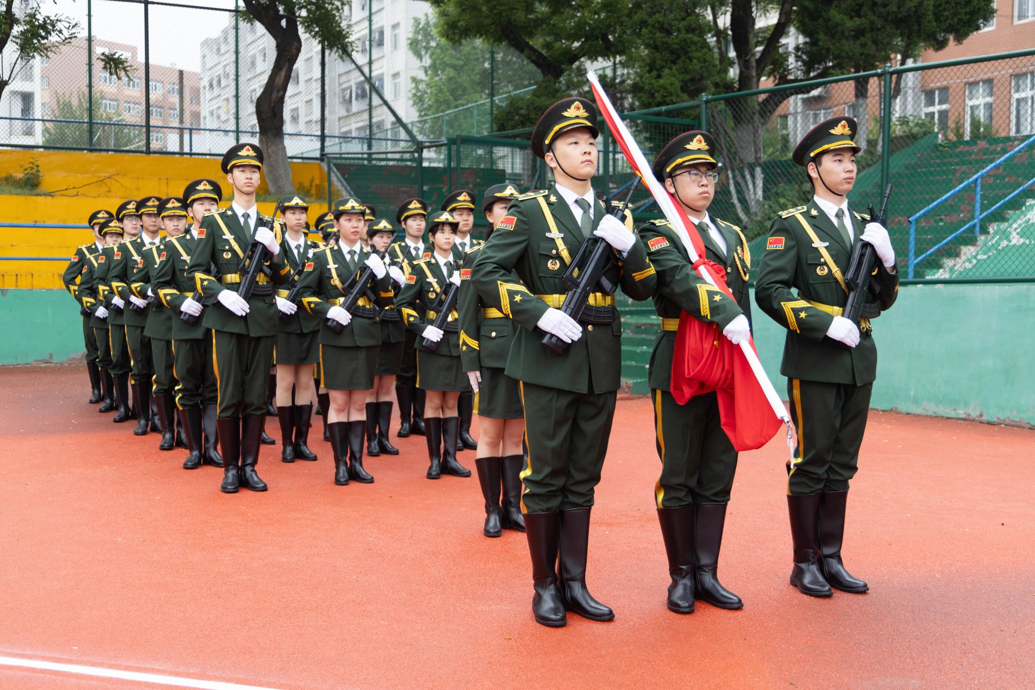 7时整,升旗仪式正式开始。国旗护卫队队员英姿挺拔,迈着整齐划一、铿锵有力的步伐,护送国旗走向升旗台。五星红旗伴着激昂有力的《义勇军进行曲》飘扬在校园上空,全体师生行注目礼,齐唱国歌。