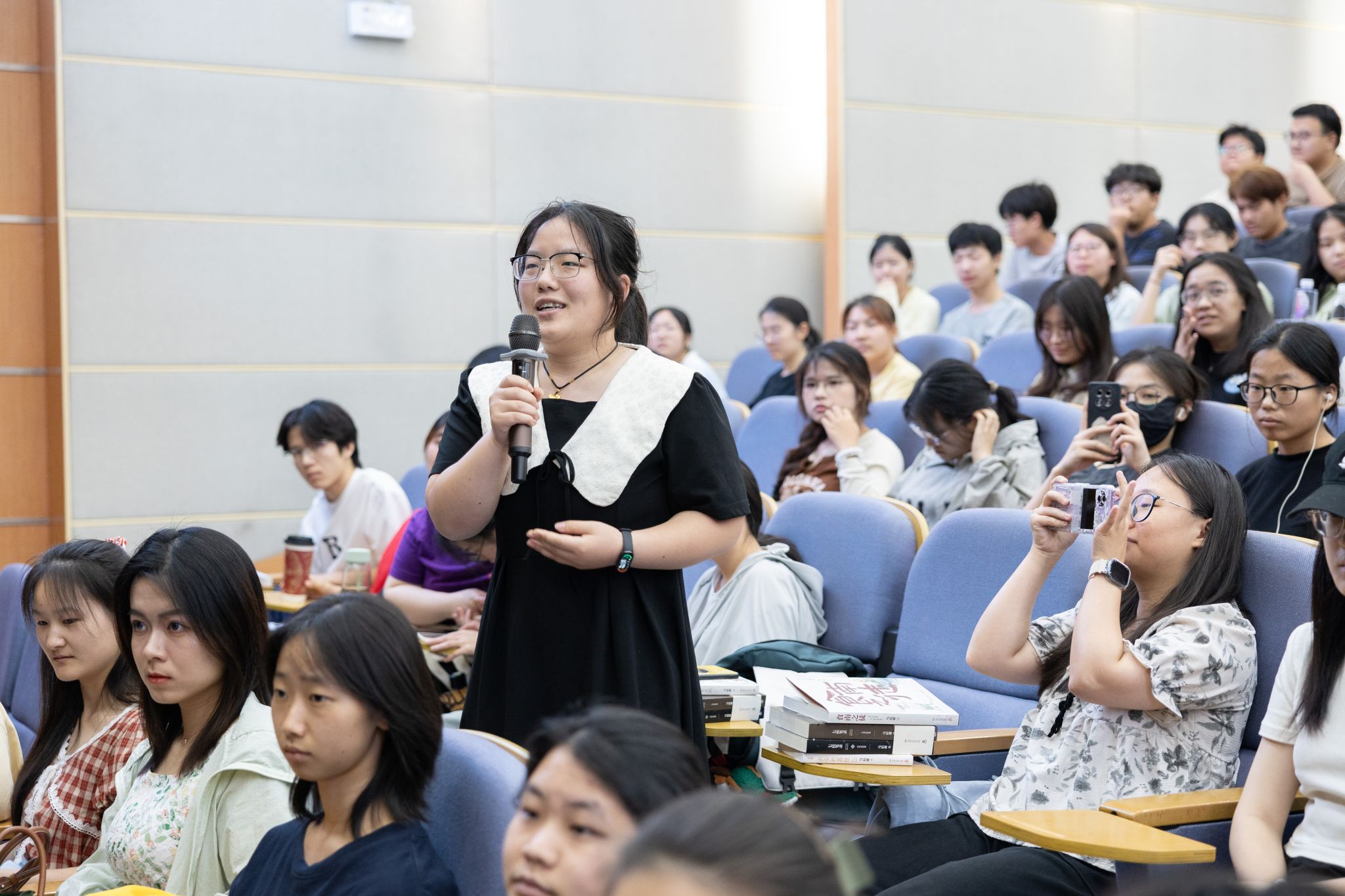 “您认为如何把握好历史与文学创造的关联与平衡?”“有没有什么历史中的事件或者故事对您和您的写作产生了深深的影响?”“重新回望您过往的一些作品,会不会有一些不同的情愫或者感悟?”讲座结束后,同学们意犹未尽,现场与马伯庸就历史、文化等主题展开思维碰撞。“历史中的大与小不是互斥的,我们既要看到历史中的细节,又要把它反照到历史潮流、历史规律上去,才能知道历史的真面目到底如何。愿同学们在未来学习、生活中多认识、多感悟。”在交流环节中,在场学子就中国文化及马伯庸的著作踊跃发言,马伯庸一一作了详细解答,并就如何正确学习和深入中国历史、传统文化作了进一步阐释。