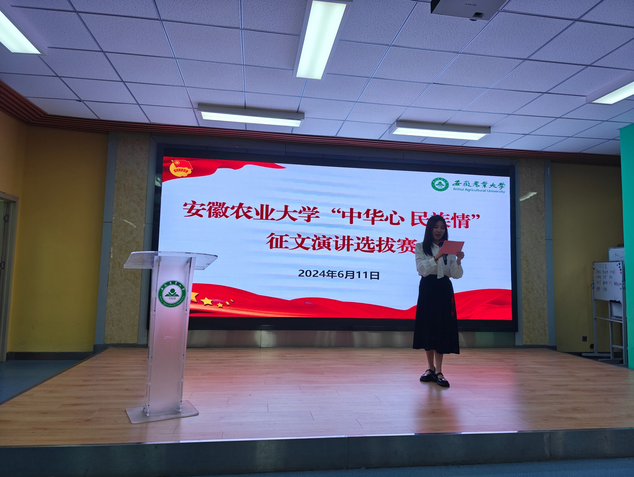 本网讯 6月11日,安徽农业大学“民族心 中华情”大学生征文演讲比赛在创客空间A区路演大厅举行。材料与化学学院党委书记夏成云,武装部副部长、学生处副处长卢伟,校团委副书记柳洁,人文社会科学学院艺术部教师张丹,统战部秘书张村侠担任此次活动的评委。