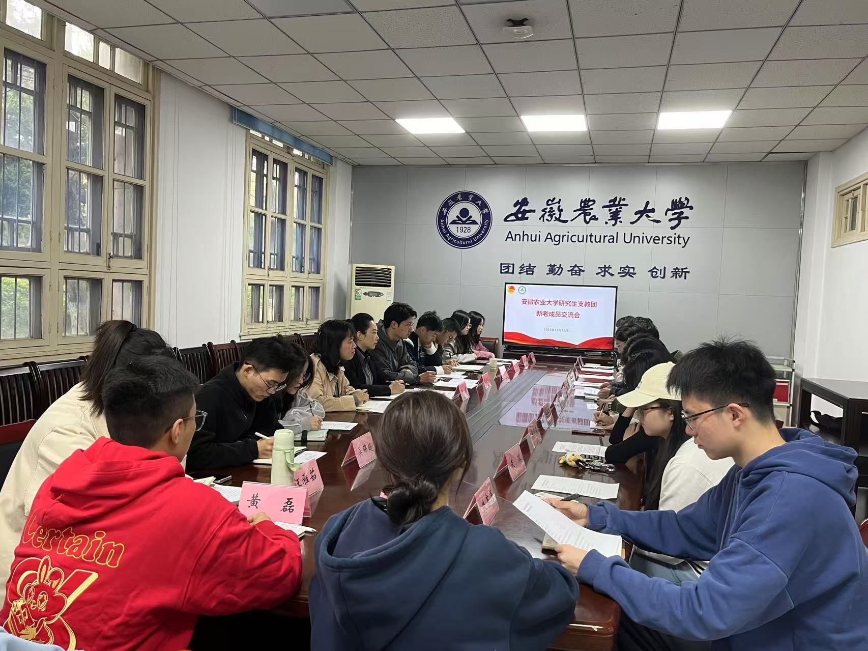 本网讯 11月13日,安徽农业大学研究生支教团新老成员交流会在勤政楼148会议室召开。校团委副书记柳洁、挂职副书记葛伦伟、研支团负责老师、第25届及第27届研究生支教团全体成员参加了此次会议。