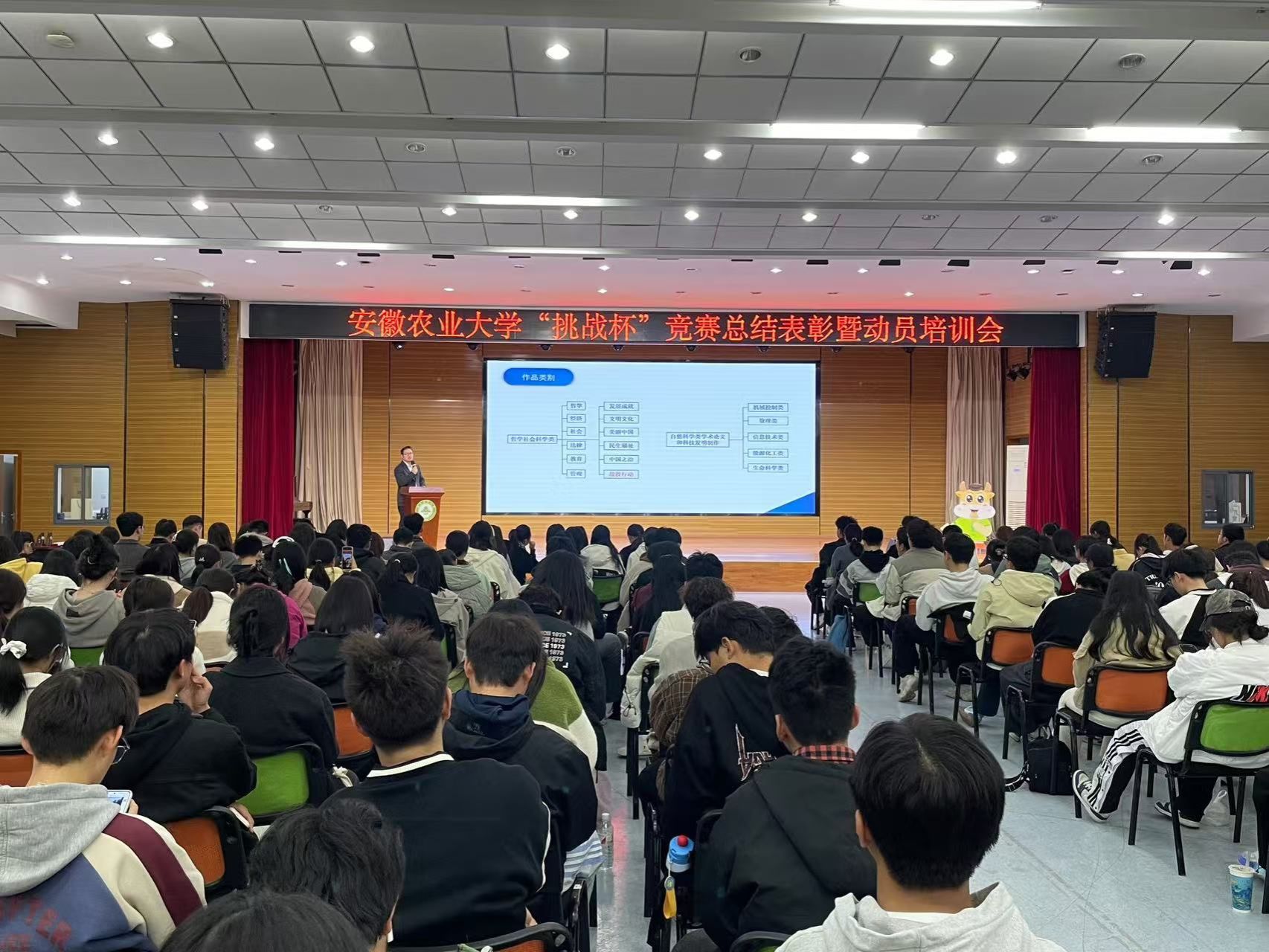 本网讯 为进一步培养我校大学生科技创新能力与本领,不断提升“挑战杯”竞赛参赛作品水平,服务学校创新创业型人才培养。11月21日晚,我校在欣苑四楼大学生活动中心开展“挑战杯”竞赛总结表彰暨动员培训会,校教务处、创新创业学院、团委等部门负责人,各学院团干、拟参加2025年“挑战杯”竞赛的师生等300余人参加了此次活动。