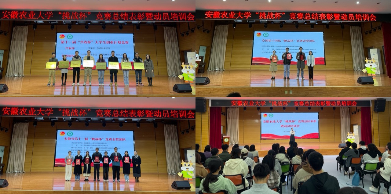 会上,对第十一届“挑战杯”安徽省大学生创业计划竞赛金奖项目、第十四届“挑战杯”中国大学生创业计划竞赛银奖项目以及第十一届“兴农杯”大学生创业计划竞赛“兴农杯”与优秀组织奖获奖单位与团队进行了表彰。工学院团委副书记翟施程、资源与环境学院参赛学生代表卫正宇分别进行交流发言。第十八届“挑战杯”全国大学生课外学术科技作品竞赛特等奖与二等奖作品进行了现场路演。(文图/魏安康 编辑/夏文秀 审核/武晓蓓)