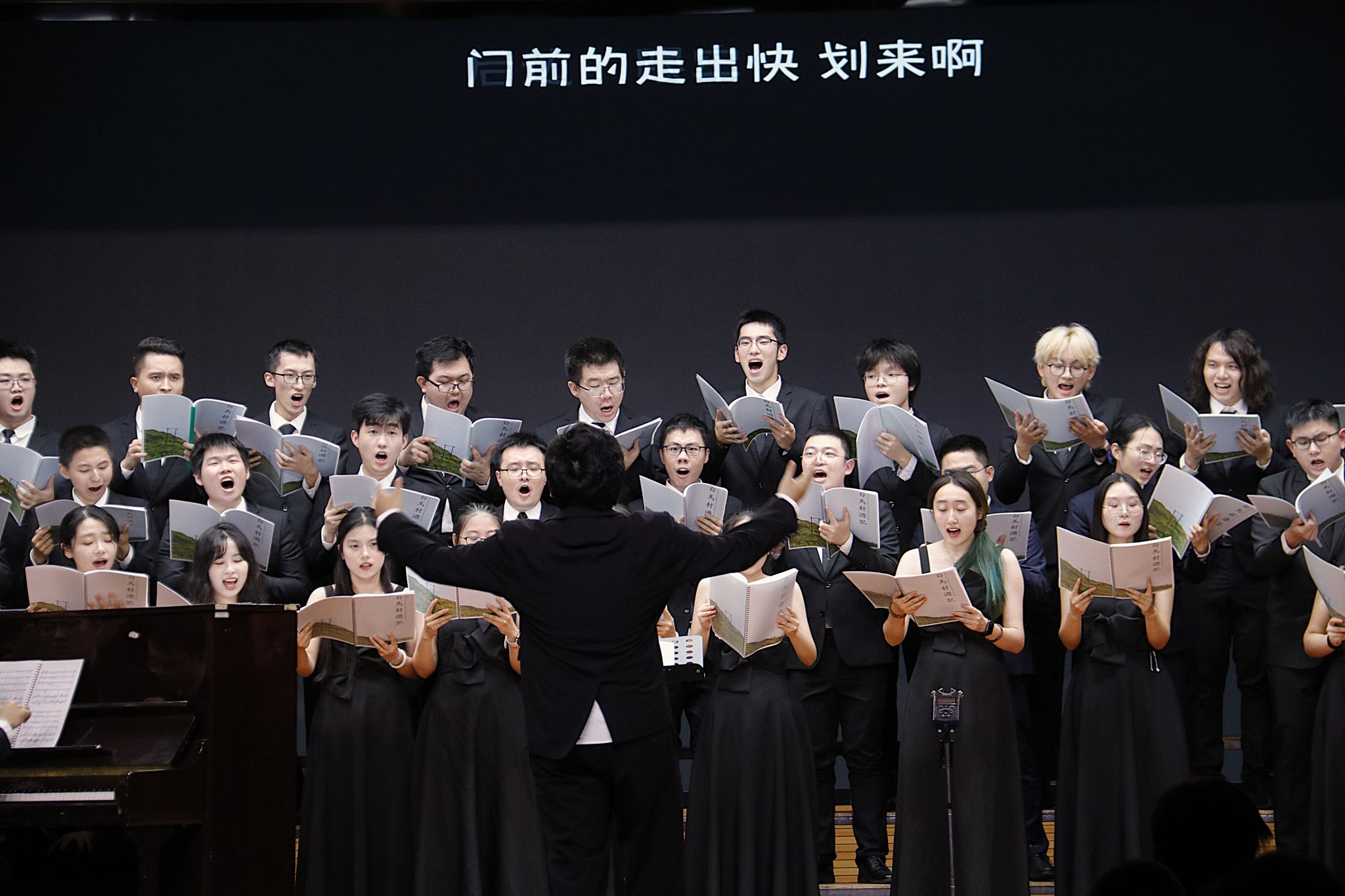音乐会分为传统诗词合唱作品、近现代诗词合唱、民族地域合唱、当代合唱剧《白马村游记》四个篇章。合唱中,既有取材于徐志摩诗篇和陈阳等当代诗人的合唱作品,也包括弘扬科学家精神的中国科大原创作品,体现了科学与人文的完美结合。最后,当代合唱剧《白马村游记》作品包含七幕,描绘了主人公在一个架空世界的所见所闻,从外界的山村风土人情,引向内心的回忆与沉思,深受观众喜爱。音乐会上,中国科学技术大学学生合唱团以其精湛的演唱技艺和深厚的艺术底蕴,演绎了一系列传统与现代诗词合唱作品。每个篇章都充满了丰富的文化内涵和艺术表现力,展现了中华优秀传统文化的魅力和合唱艺术的多样性。